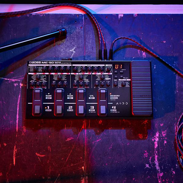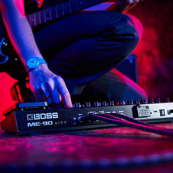 BOSSのMEシリーズは、軽量かつ堅牢な筐体に充実したパラメーター・ノブとフットスイッチを装備したマルチ・エフェクターです。コンパクト・エフェクターの様なノブ操作による直感的な音作りと、プレイヤーの演奏スタイルに合った柔軟なコントロールを実現します。最新モデルのME-90は、これらのコンセプトを継承しつつ、数多くのアップデートが施されています。サンプリング・レート48kHz、内部演算32bit float(浮動小数点)処理による優れた音質を実現。真空管アンプのサウンドと弾き心地をもたらすAIRDプリアンプと、最高峰のアルゴリズムで設計されたエフェクトを多数搭載し、プロ・クオリティのサウンド・メイクが可能です。また、専用アプリを用いれば、さらに多くのプリアンプ/エフェクトへのアクセスや、IRデータの取り込みができます。SEND/RETURN端子を装備しているため、外部ペダルの取り込みにも対応。音作りの自由度が飛躍的に広がりました。