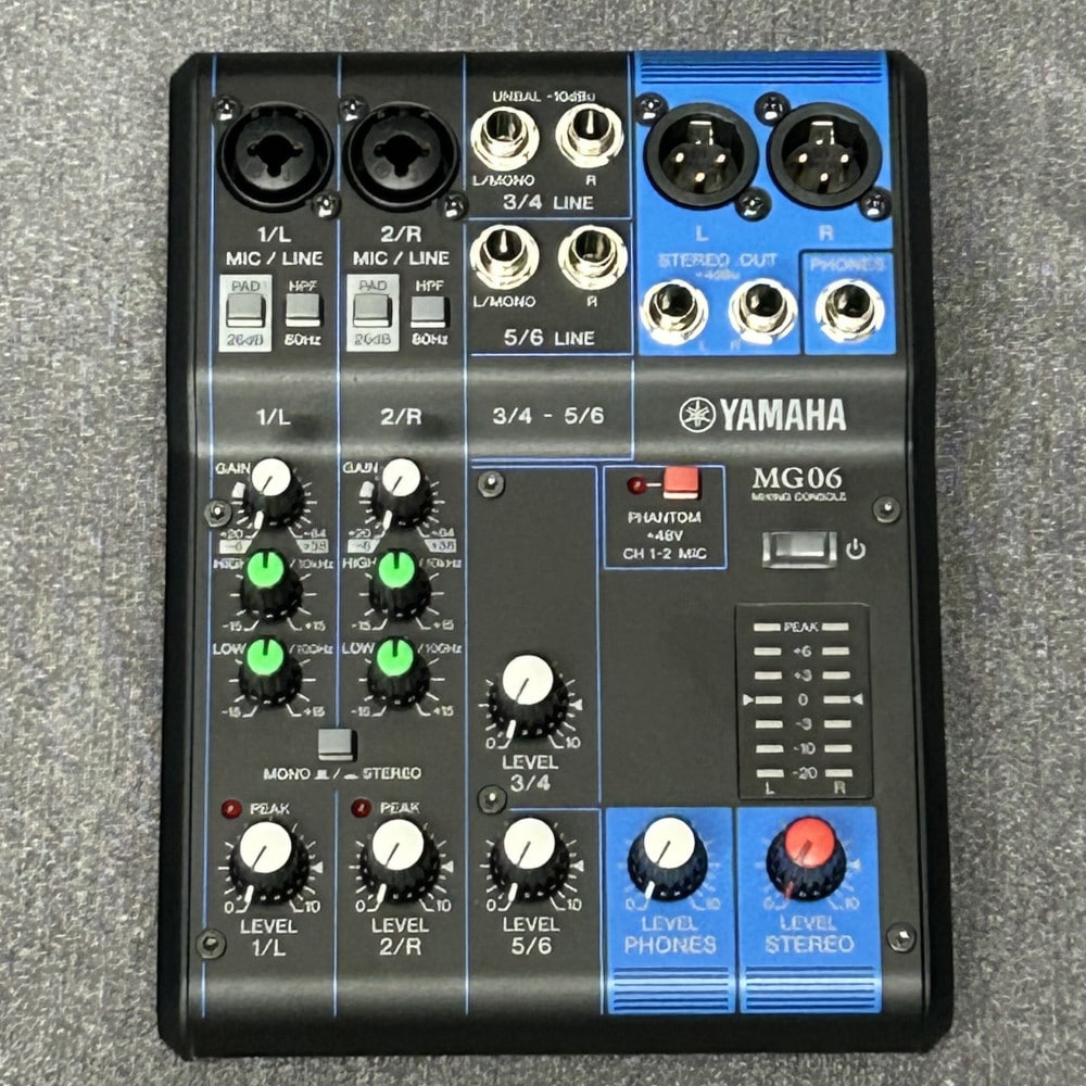 MGシリーズは、ワイドな周波数特性と高音質が特徴のコンデンサーマイクを使用するのに必要なファンタム電源を装備しています。また入力信号のレベルを減衰させるPADボタンも装備。