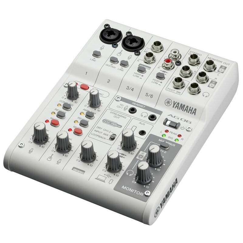 コンピューター、タブレット、スマートフォン経由でライブ配信などをするための機能を備えた 2 モノラルマイク / ライン入力 + 2 ステレオ入力の 6ch ミキサー。
