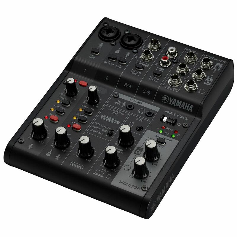 コンピューター、タブレット、スマートフォン経由でライブ配信などをするための機能を備えた 2 モノラルマイク / ライン入力 + 2 ステレオ入力の 6ch ミキサー。