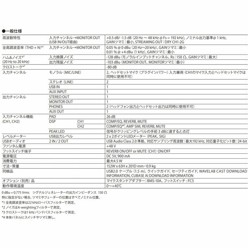 ・同梱物:USB2.0 ケーブル(1.5 m), クイックガイド, セーフティガイド, WAVELAB CAST DOWNLOAD INFORMATION, CUBASE AI DOWNLOAD INFORMATION