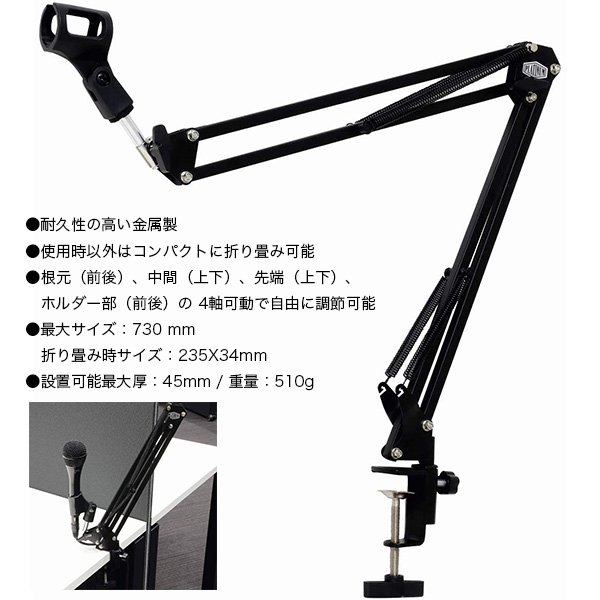 同梱品:マイクホルダー、変換ネジ(3/8 インチ - 5/8 インチ変換)× 1、マイクポーチ × 1、取扱説明書(本書・保証書付)