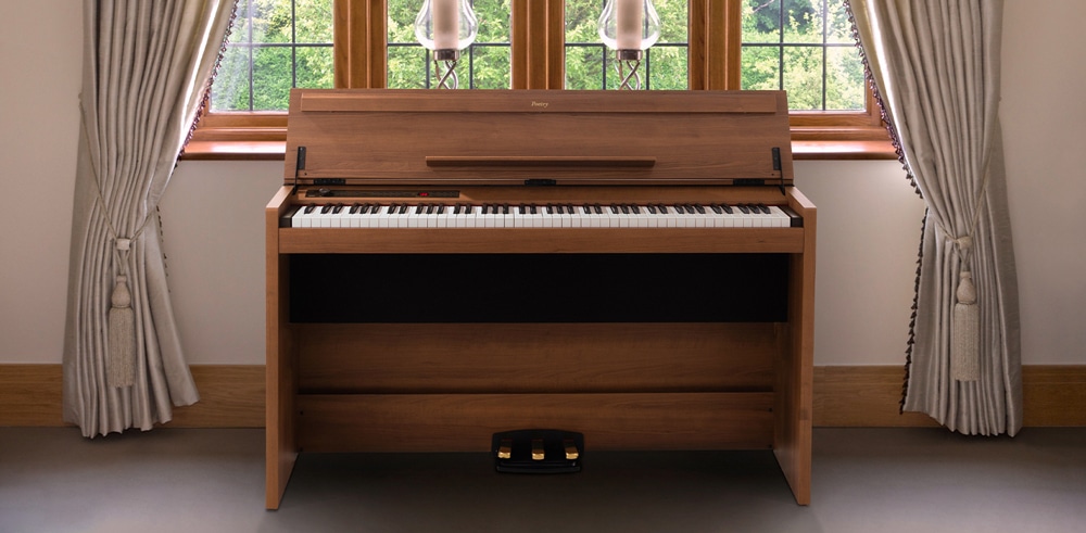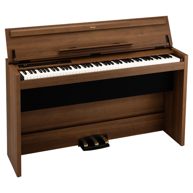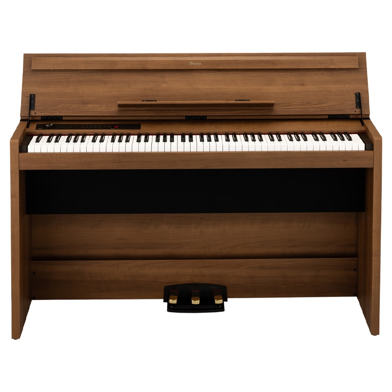 「Poetic Brown」と名付けた美しくエレガントな木目調の外観は、ショパンの纏う優しく温かみのある雰囲気をイメージしたものです。木目調ならではの落ち着いた雰囲気と品のある存在感は、さまざまなインテリア・スタイルと調和しやすく、お部屋に溶け込むようなデザインになっています。また鍵盤やペダルの根元には赤いフェルトを施し、上質な雰囲気に仕上げました。