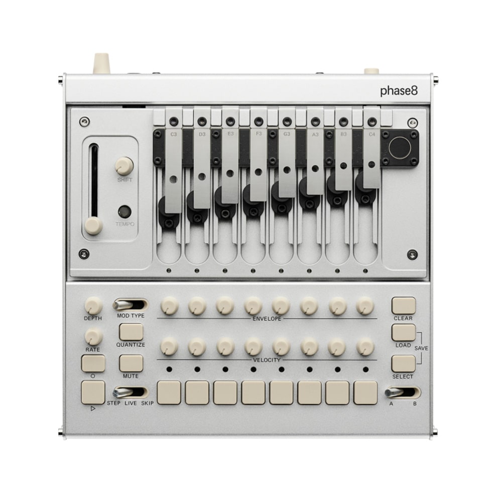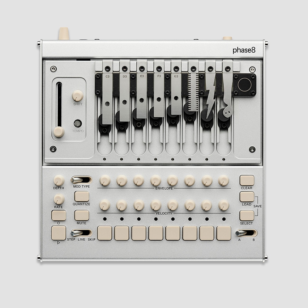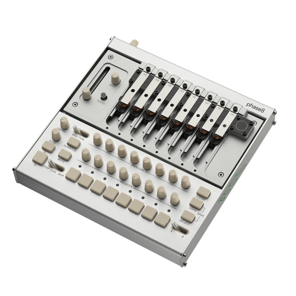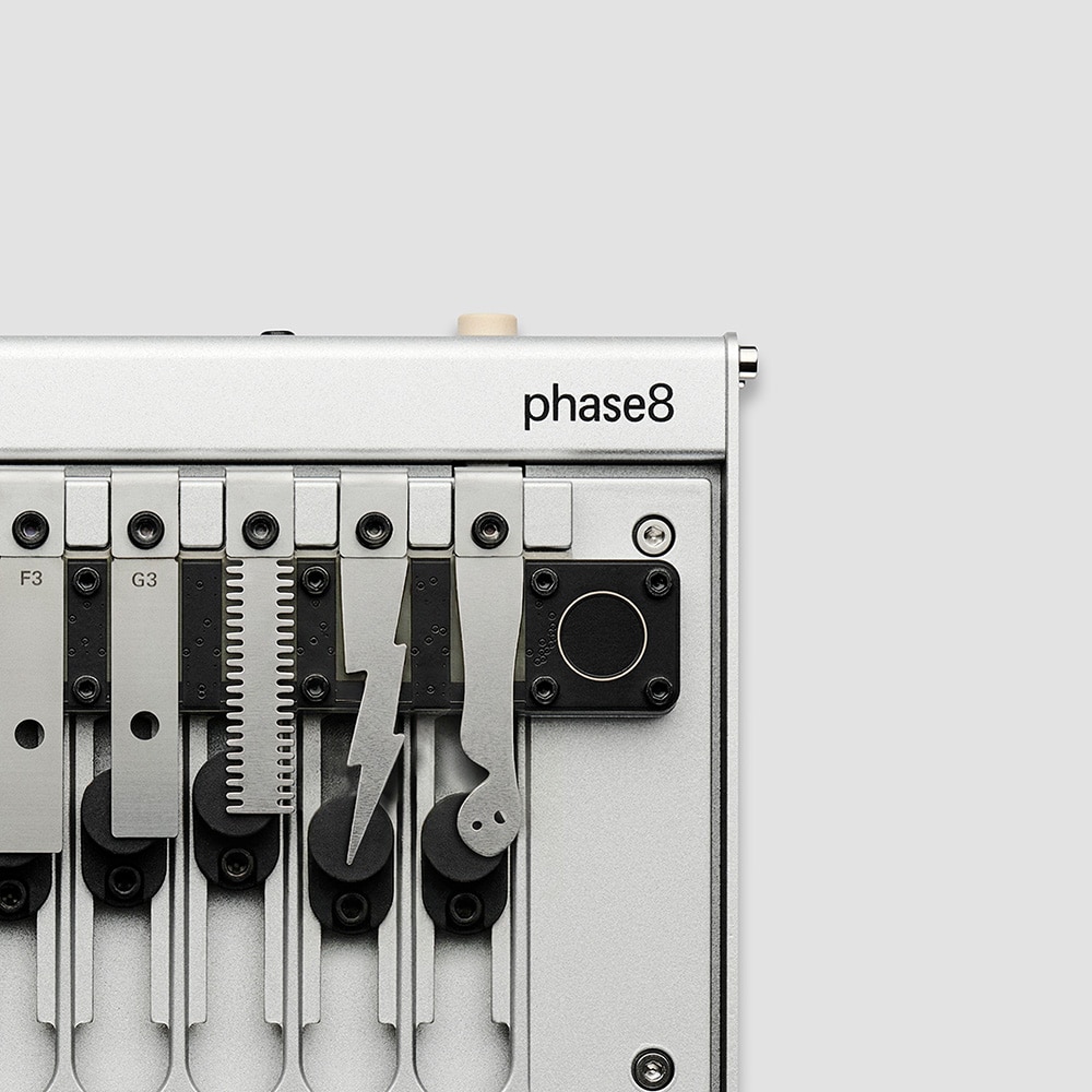 phase8 は、物理世界が持つ音の豊かさと、精密な電子制御を融合させた、8ボイスのアコースティック・シンセサイザーです。