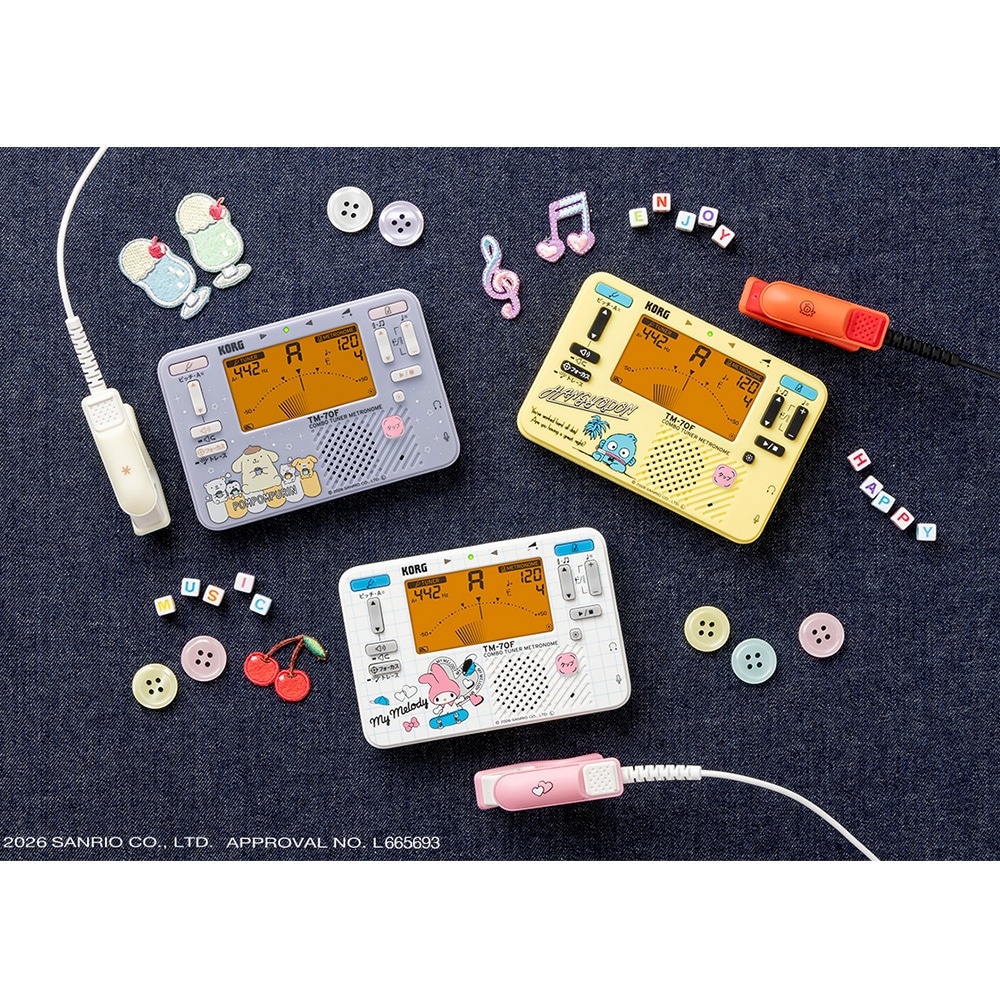 多彩な機能と高い視認性を備えたチューナー・メトロノームTM-70Fと、楽器に取り付けて振動を直接キャッチできるクリップ式コンタクト・マイクCM-400がセットになったTM-70Cに、ハンギョドン、ポムポムプリン、マイメロディのサンリオキャラクターズ特別デザインが登場!