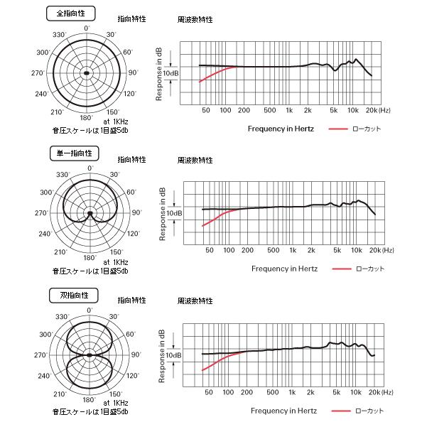 指向特性:可変(無指向性、単一指向性、双指向性)