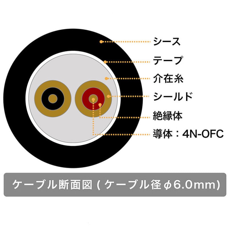 ケーブルの導体には高純度無酸素銅(4N-OFC)を採用し、安定した音質を提供します。