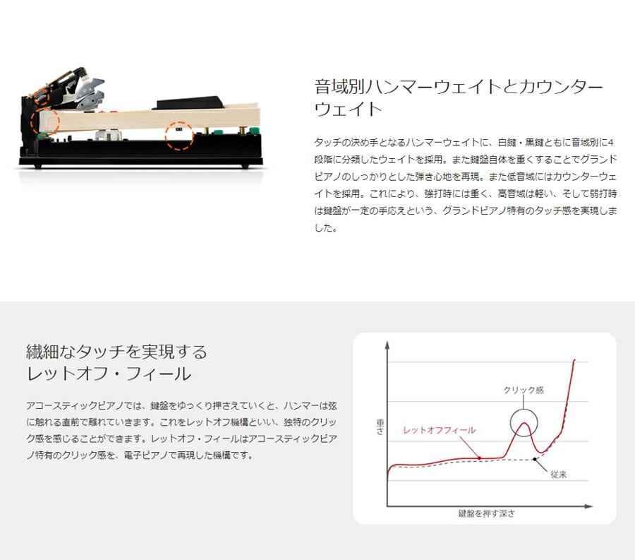 ・グランドピアノのタッチを再現するシーソー式木製鍵盤『Grand Feel Standard Action』