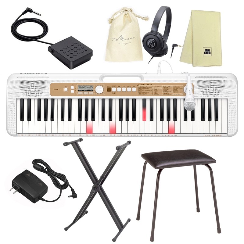 CASIO (カシオ) LK-340 + X型スタンド + 椅子(CB5) + ペダル(SP3) + ヘッドフォン(ATH-S100BK) + クロス + 巾着 セット / 光ナビゲーション キーボード 61鍵盤