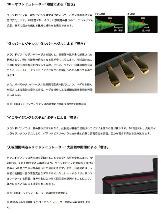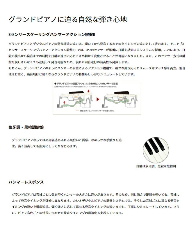 鍵盤:3センサースケーリングハンマーアクション鍵盤(表面仕上げ 白鍵:象牙調、黒鍵:黒檀調)