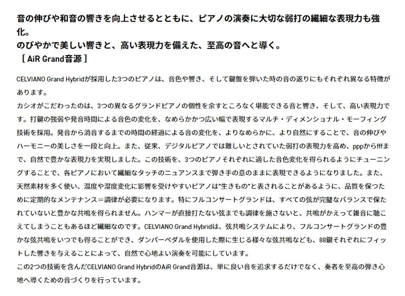付属品:ACアダプター(AD-E24500LW)、高低自在イス、ヘッドホン、ヘッドホン用フック、譜面立て、楽譜集「コンサートプレイ」、楽譜集「ミュージックライブラリー」