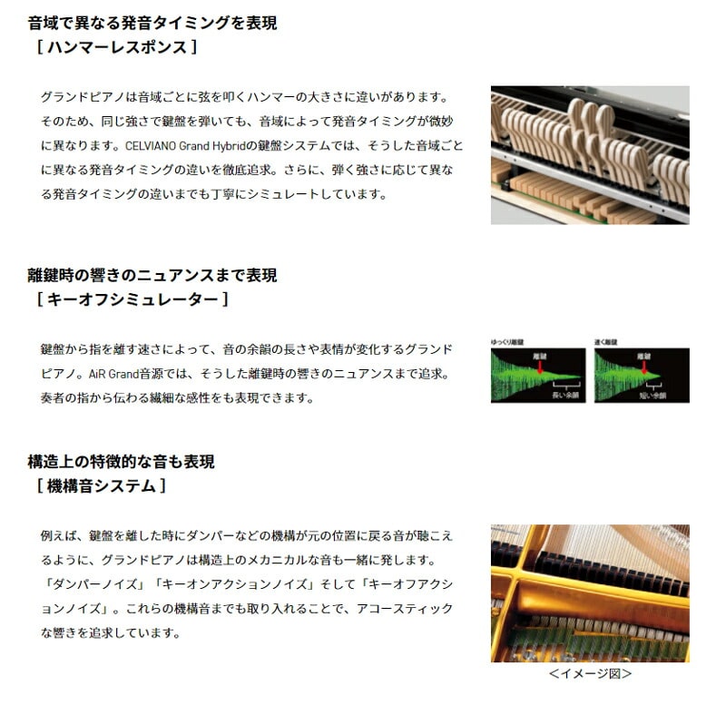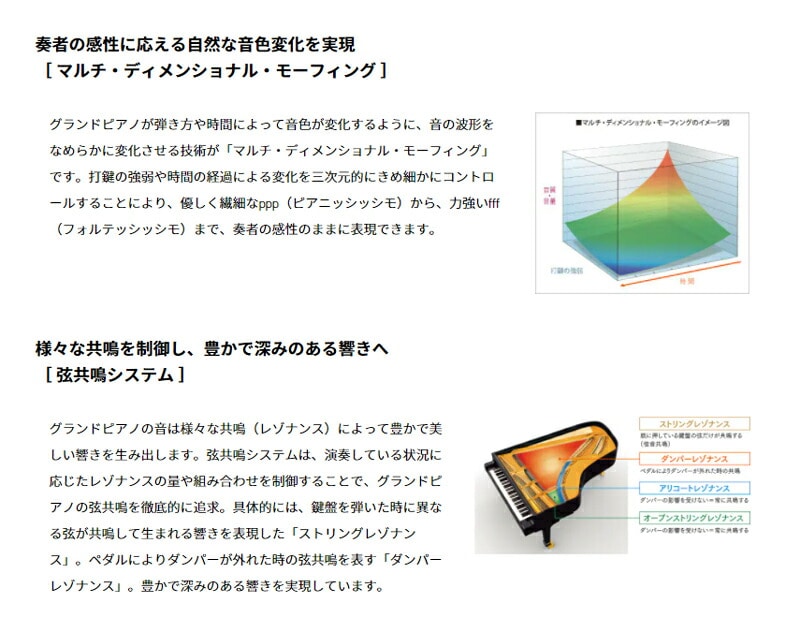 鍵盤:ナチュラルグランドハンマーアクション鍵盤(木製鍵盤/表面素材 白鍵:アクリル、黒鍵:フェノール)