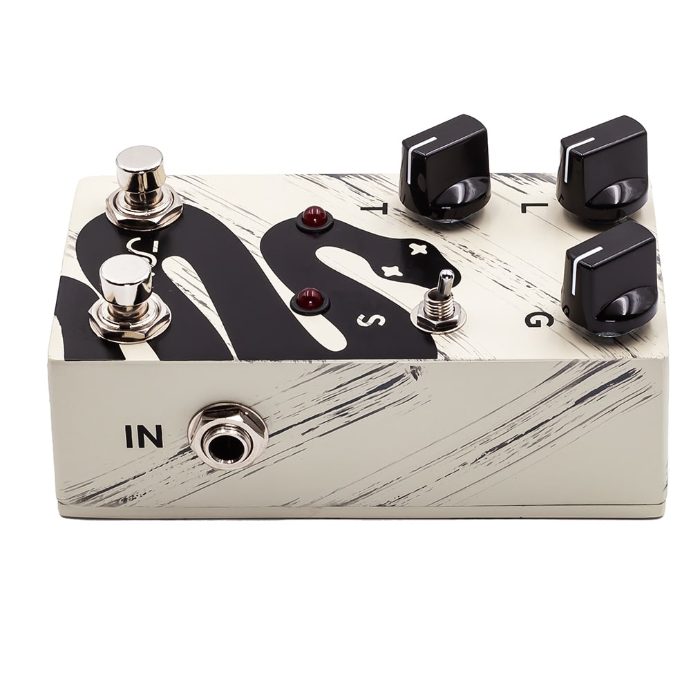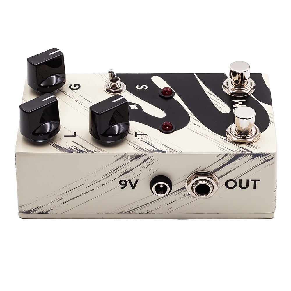 2つ目のフットスイッチを使うと、Rattlerの前段でミッドブーストがオンになり、トーンに新たな奥行きが加わります。これはボリュームブーストではなく、トーンエンハンサーとしてお使いください。