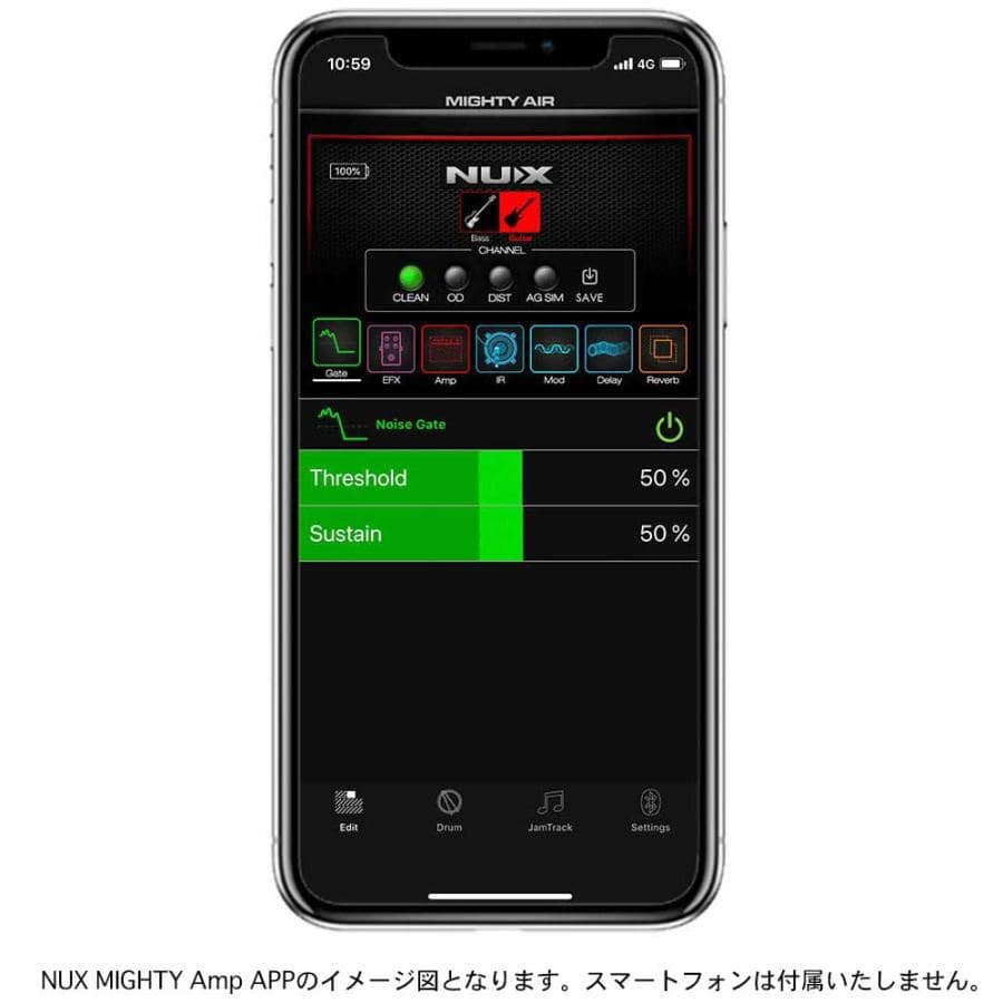 ・Andoroid、IOSの NUX MIGHTY Amp APP を使用し、ブルートゥース接続。ワイヤレスでサウンドの調整、オーディオ再生が可能。