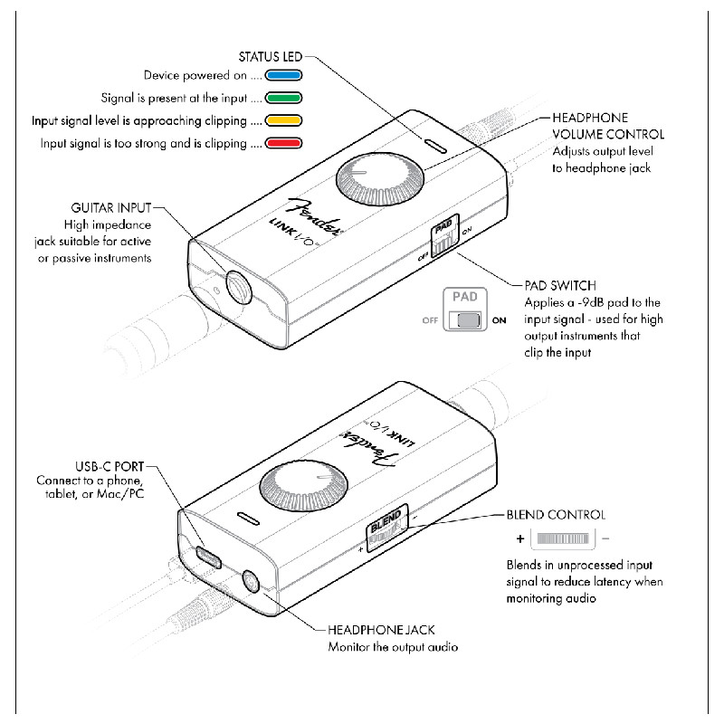 ギターやベースプレイをキャプチャーするのに最適なツール、Fender Link I/O?はポケットに収まるコンパクトサイズを実現した、スタジオグレードのオーディオインターフェースです。Fender Link I/Oは、USB接続で原音に忠実な双方向オーディオを提供し、楽器やヘッドフォンを携帯電話、タブレット、Mac、PCに接続することができる便利なオールインワンソリューションです。