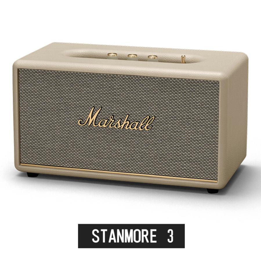 能です。内蔵のダイナミックラウドネスは音のトーンバランスを調整し、すべての 音量で音楽が鮮明に聞こえます。ミドルサイズにあたるStanmore3は、広がりのあるマーシャルサウンドを再現し、音楽に完全に没頭することができます。
