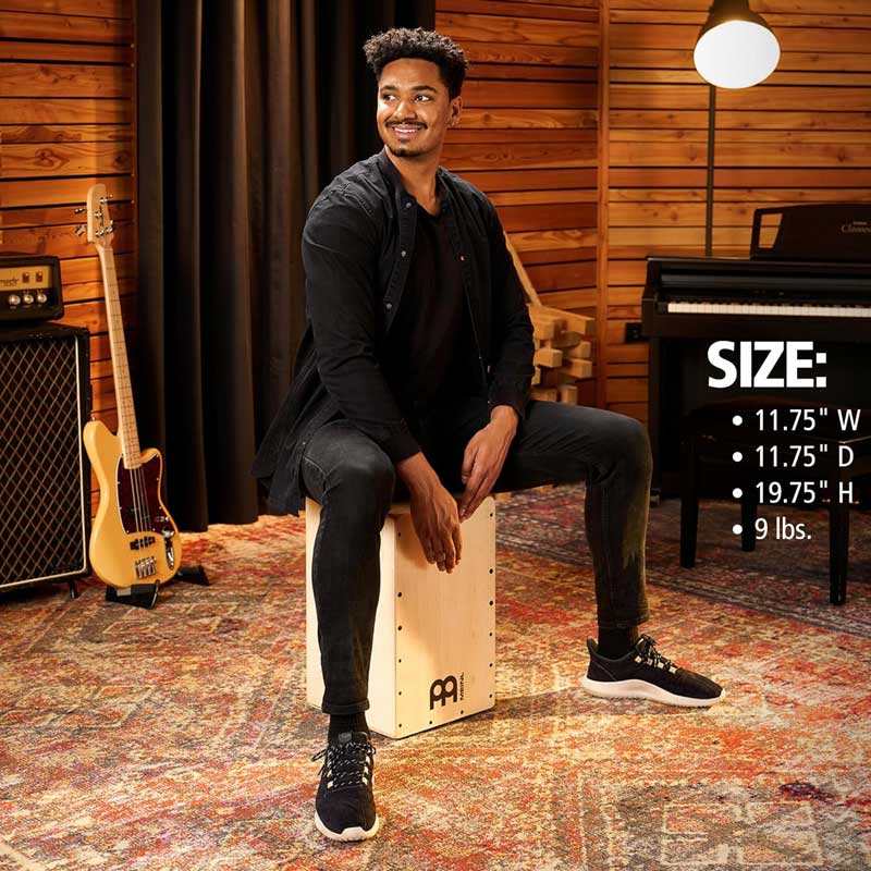 Snarecraft カホンは、クリスピーなスネアと暖かい音質を兼ね備えています。内部にセットされた2セットのワイヤーと隠し味のストリングスによって、絶妙にブレンドされた素早いレスポンスのスネアと、バルティックバーチを使用したボディーから出るパンチの効いた低音が幅広いダイナミックレンジを提供します。また、上部の丸く削られたコーナーは演奏時のタッチに最大限の快適さを与えます。