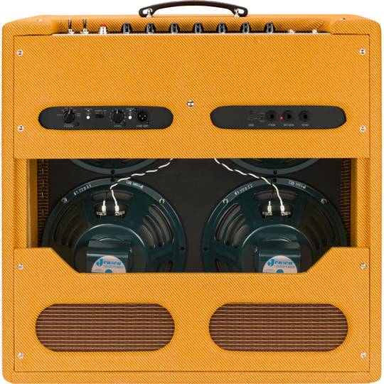 4基のJensen P-10Rスピーカーはサウンドのきらめきとタッチセンシティブな特徴に加え、コンボリューションスプリングリバーブ、スムーズなベースレスポンスを提供するVintage/Tight切替スイッチ、エフェクトループなど、プレイヤー目線の追加機能を内蔵しています。その他、フルパワーと5段階のアッテネート設定が切り替え可能な出力パワーセレクター、精緻なキャビネットシミュレーションを実現するインパルスレスポンス(IR)XLRライン出力、ミュートスイッチ、軽量なパイン材キャビネットなどの特徴を備えています。