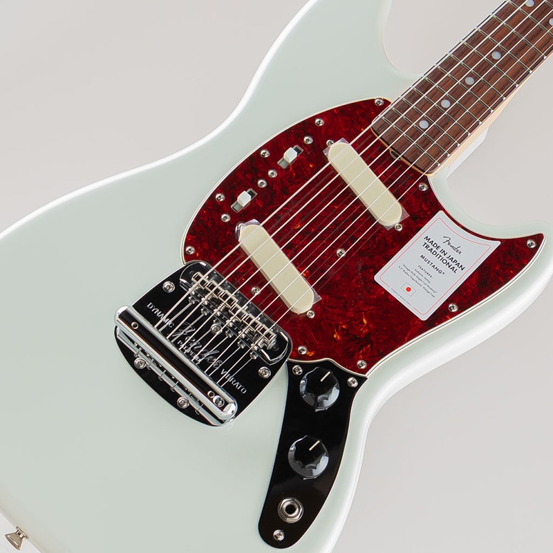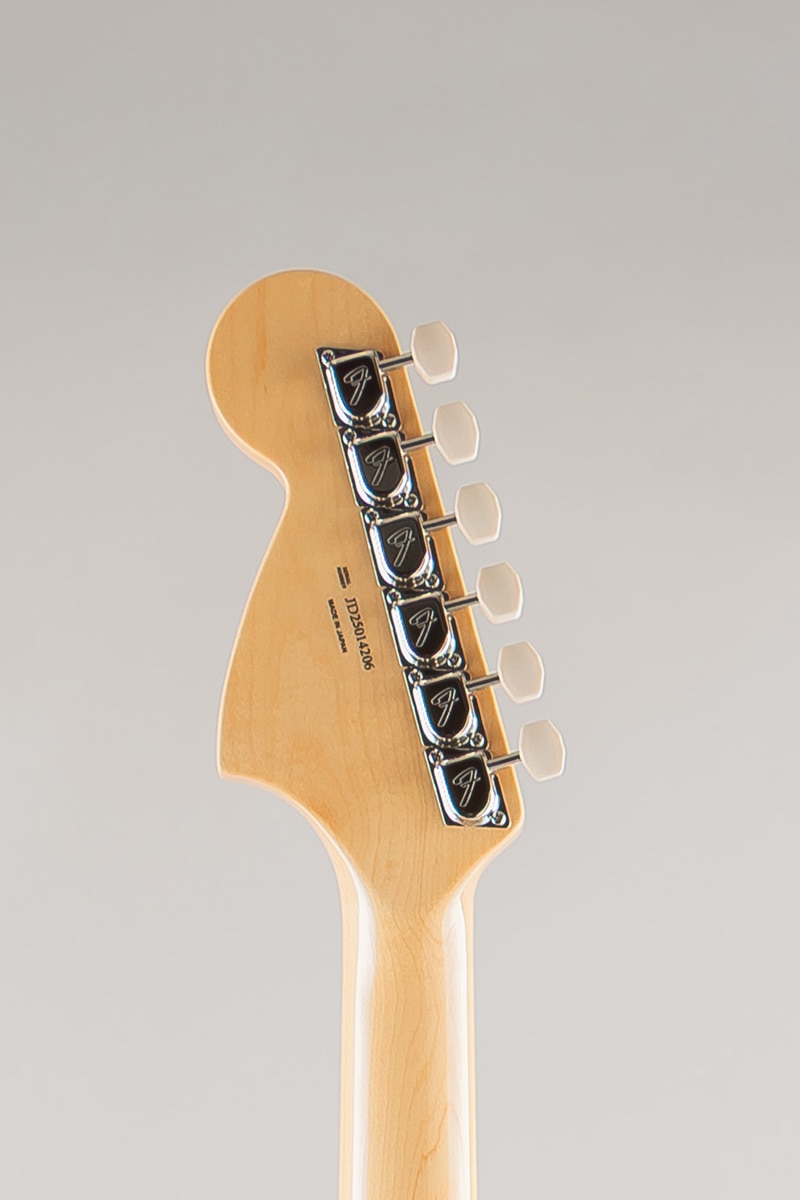 Made in Japan Traditional 60s Mustangはグロスフィニッシュのバスウッドボディを採用。22本のヴィンテ ージスタイルフレットを装備した9.5インチラジアスの”U” シェイプメイプルネックがTraditionalシリーズならではのクラシカルな演奏製を提供します。ダイナミックヴィブラートテイルピース付きのフローティングブリッジ、そして Traditionalシリーズのために選定されたオリジナルピック アップはリアルで音楽的なヴィンテージトーンを奏でます。堅実なギタークラフトマンシップと、プレイヤーのニーズに柔軟に対応する答えが、本シリーズに反映されています。