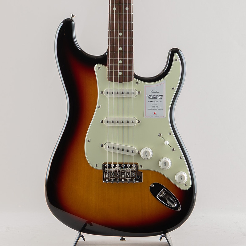 Made in Japan Traditional 60s Stratocasterはグロスフィニッシュのバスウッドボディを採用。21本のヴィンテージスタイルフレットを装備した9.5インチラジアスの”U” シェイプメイプルネックがTraditionalシリーズならではのクラシカルな演奏製を提供します。6サドル式ヴィンテージ スタイルSynchronized Tremoloブリッジ、そしてTraditionalシリーズのために選定されたオリジナルピックアップはリアルで音楽的なヴィンテージトーンを奏でます。 細めに設計されたナット幅は日本のプレイヤーにも弾きやすい仕様となっています。