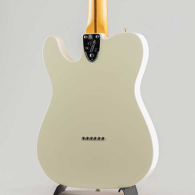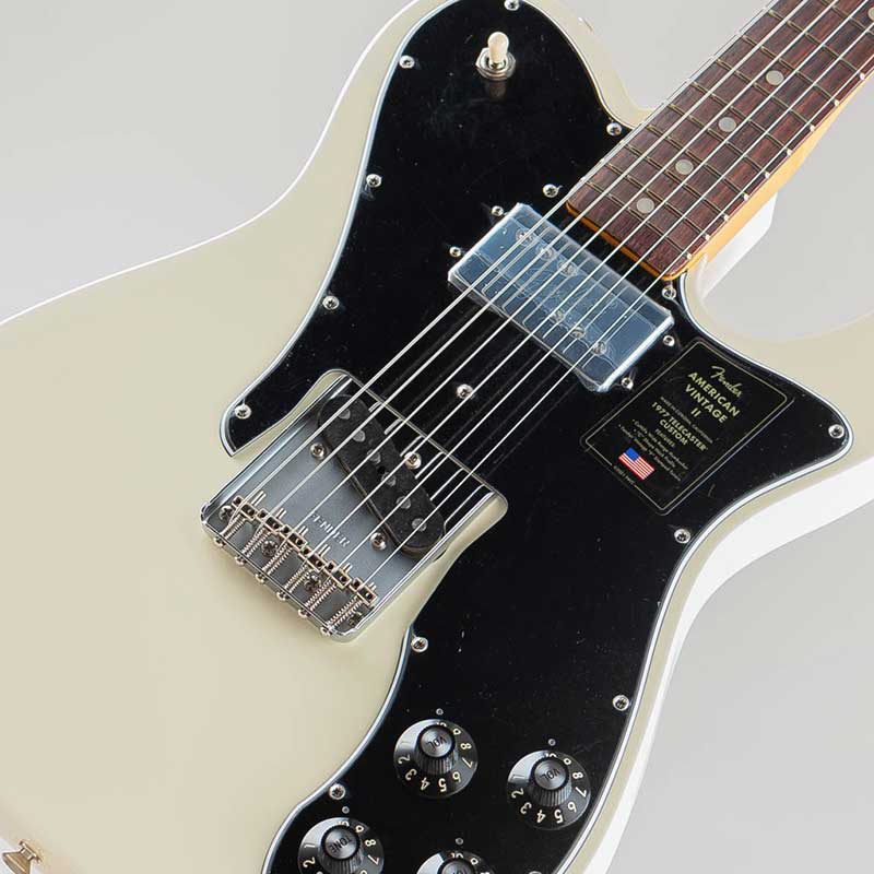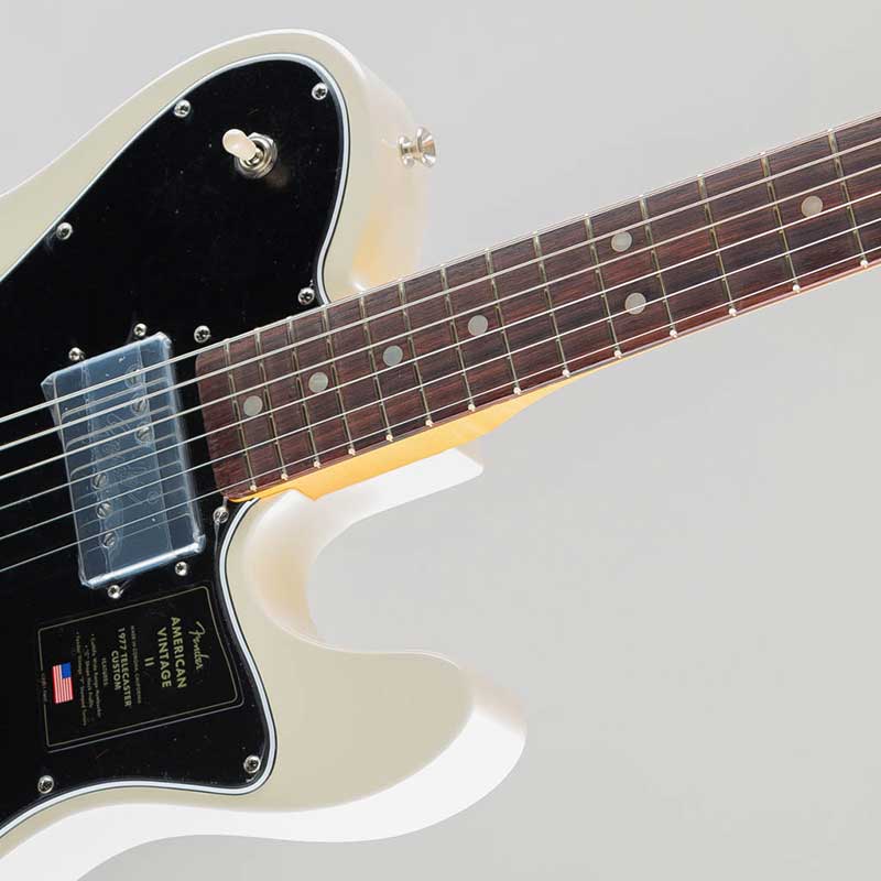 このTelecaster Customは、ネックポジションにWide Rangeハムバッカー、ブリッジポジションにPure Vintage ‘77 Single-Coil Teleピックアップを搭載しています。本格的なWide Rangeハムバッカーを作るために、1981年以来生産されていなかったCuNiFeマグネットをオリジナルのサウンドを再現するために不可欠な要素として復活させました。American Vintage II 1977 Telecaster Customは、1977 “C”シェイプの密度の高いメイプルネックに21本のヴィンテージトールフレットを配した7.25インチラジアスのメイプルまたはローズウッド指板を採用し、まるで1977年に舞い戻ったかのような、当時の楽器の演奏性を彷彿させます。その他、6つのスロテッドスチールバレルサドルを備えたTeleブリッジ、Fロゴチューナー、ヘッドに配置された便利なBulletスタイルトラスロッドナット、Micro-Tilt付きの3ボルト式ネックプレートなどを装備しています。