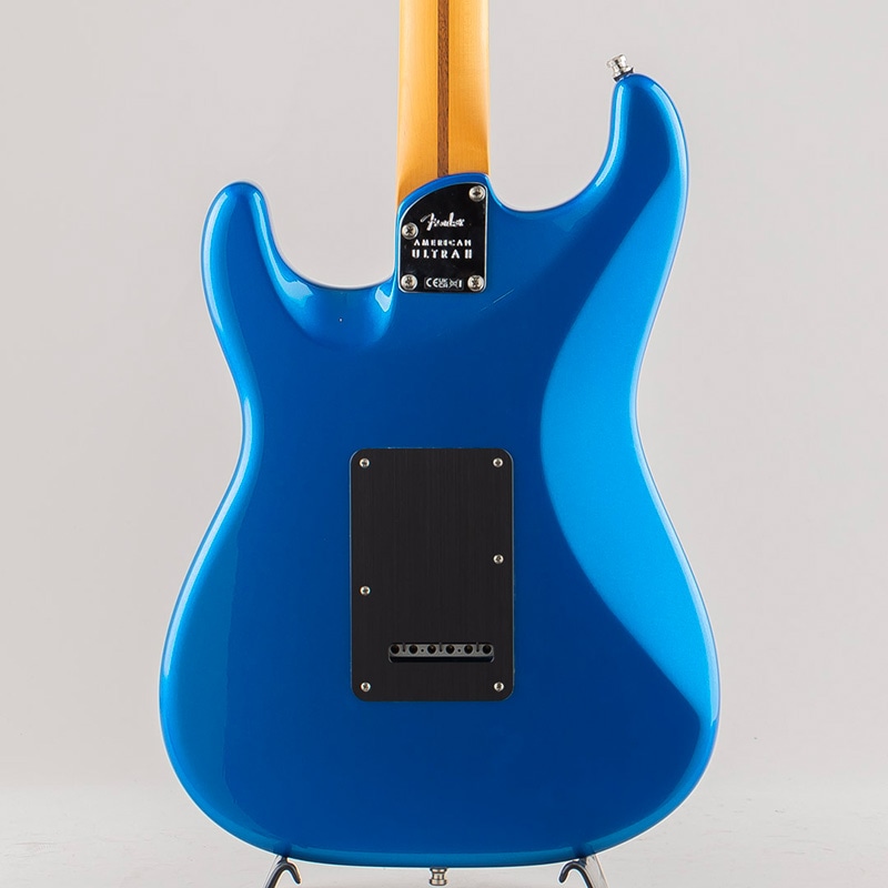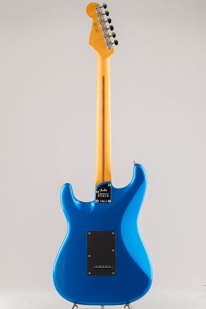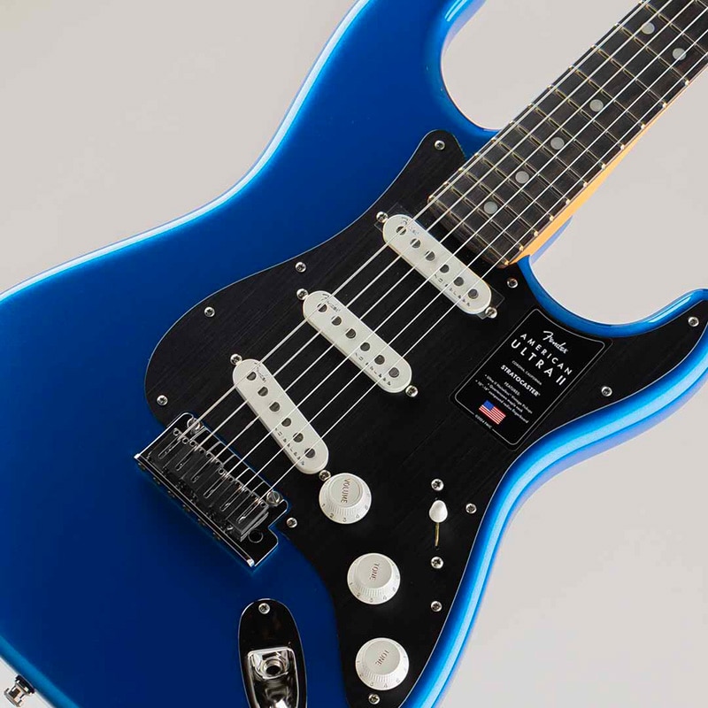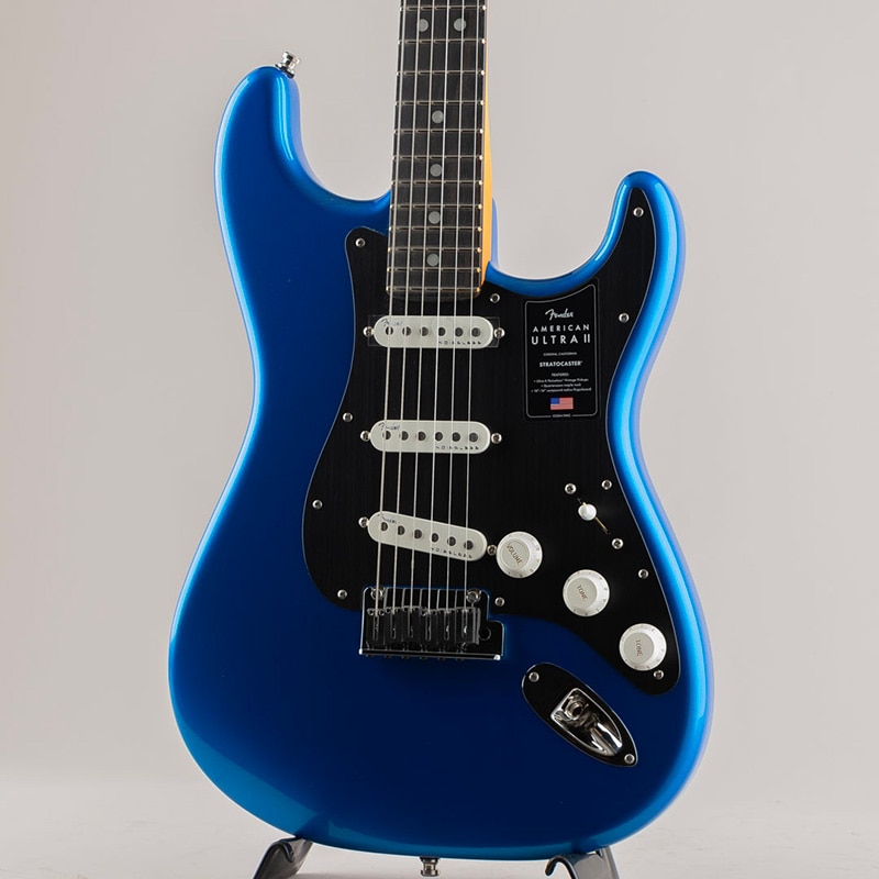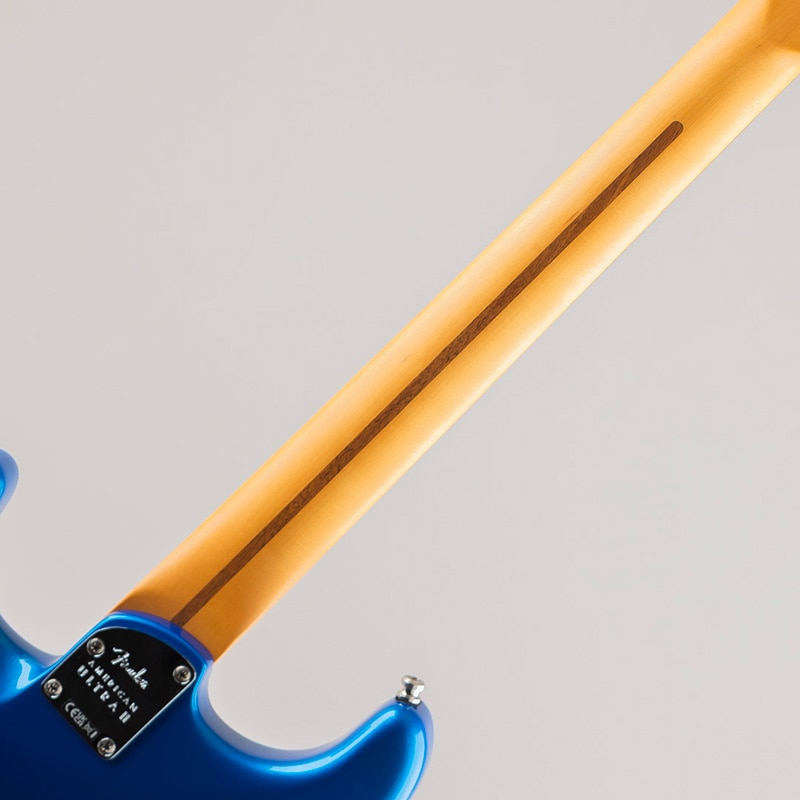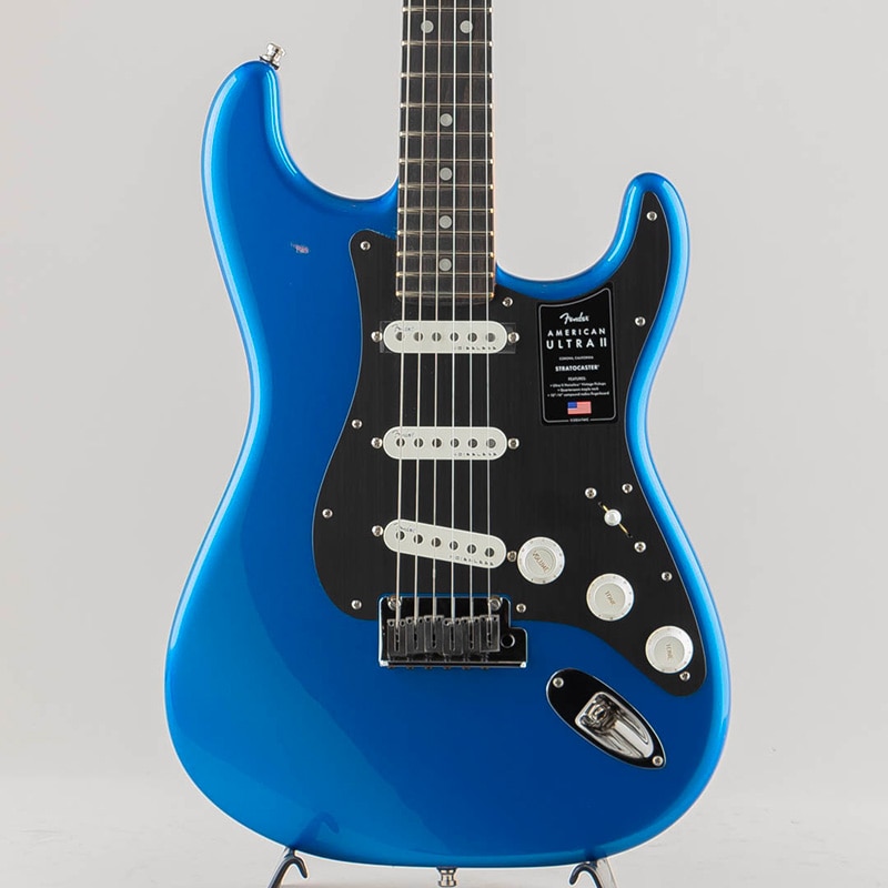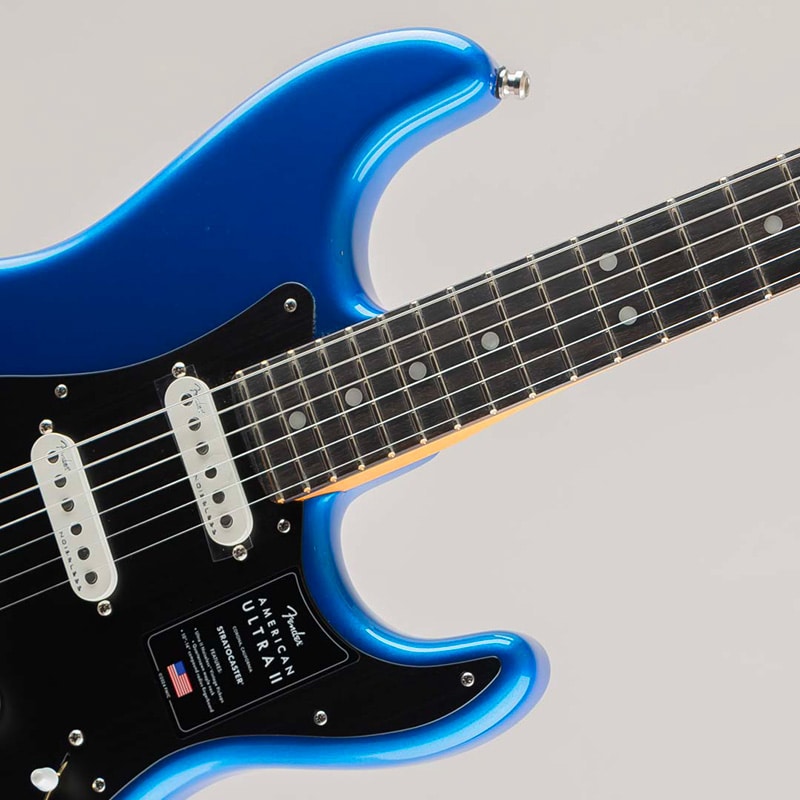 American Ultra II Stratocasterは、厳選されたアルダーボディに深めのボディコンターが施されています。クォーターソーンメイプルネックはModern "D"ネックシェイプで、ネックバックは触り心地の良いUltra Satinフィニッシュで仕上げられています。10?14インチコンパウンドラジアのエボニーまたはクォーターソーンメイプル指板は、エッジを丁寧にロールオフ処理したUltraロールドエッジが採用されており、ミディアムジャンボフレット、蓄光式Luminlayサイドドット、Graph Tech TUSQナットを装備しています。テーパードネックヒールと深いボディコンターにより、ハイポジションへの容易なアクセスが可能です。