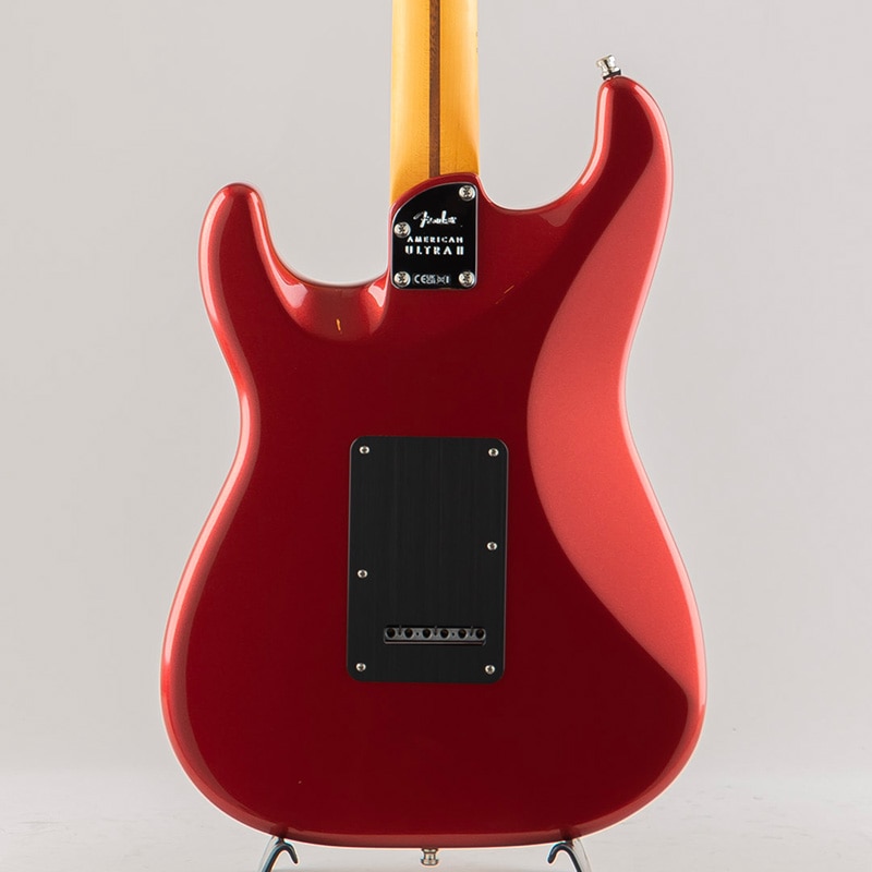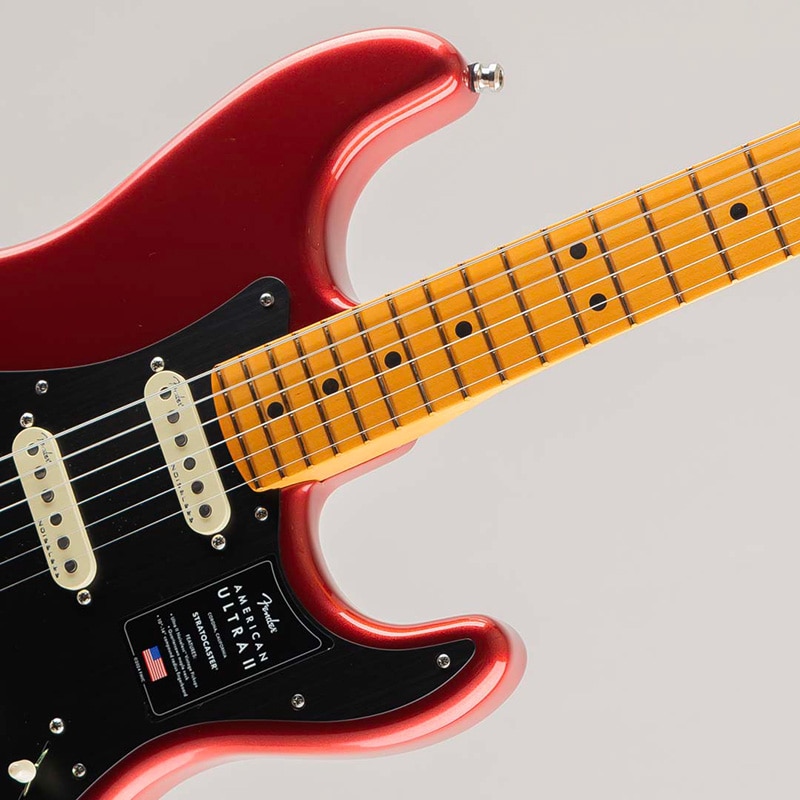 American Ultra II Stratocasterは、厳選されたアルダーボディに深めのボディコンターが施されています。クォーターソーンメイプルネックはModern "D"ネックシェイプで、ネックバックは触り心地の良いUltra Satinフィニッシュで仕上げられています。10?14インチコンパウンドラジアのエボニーまたはクォーターソーンメイプル指板は、エッジを丁寧にロールオフ処理したUltraロールドエッジが採用されており、ミディアムジャンボフレット、蓄光式Luminlayサイドドット、Graph Tech TUSQナットを装備しています。テーパードネックヒールと深いボディコンターにより、ハイポジションへの容易なアクセスが可能です。