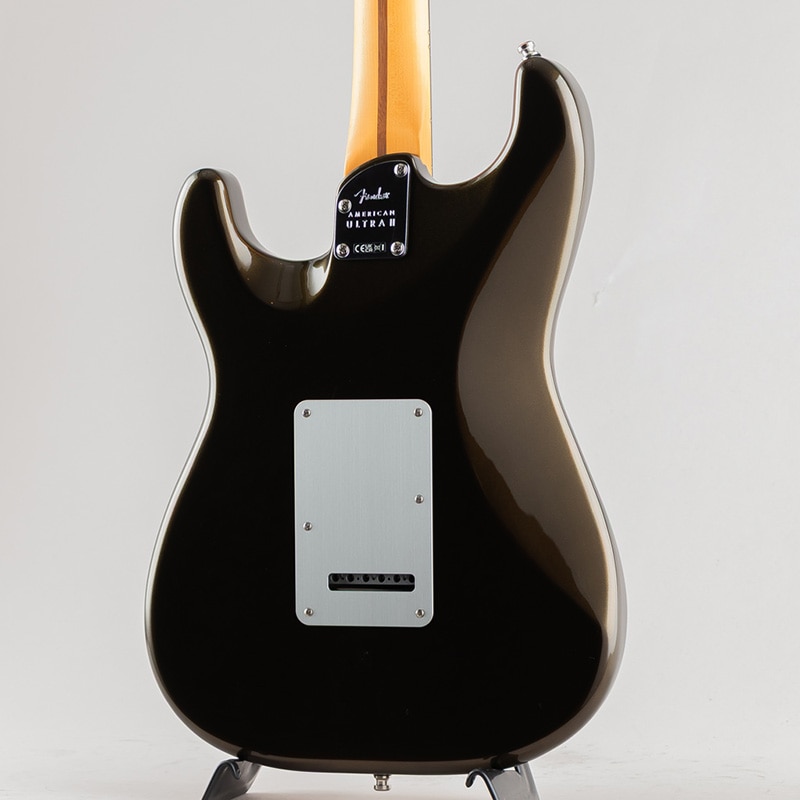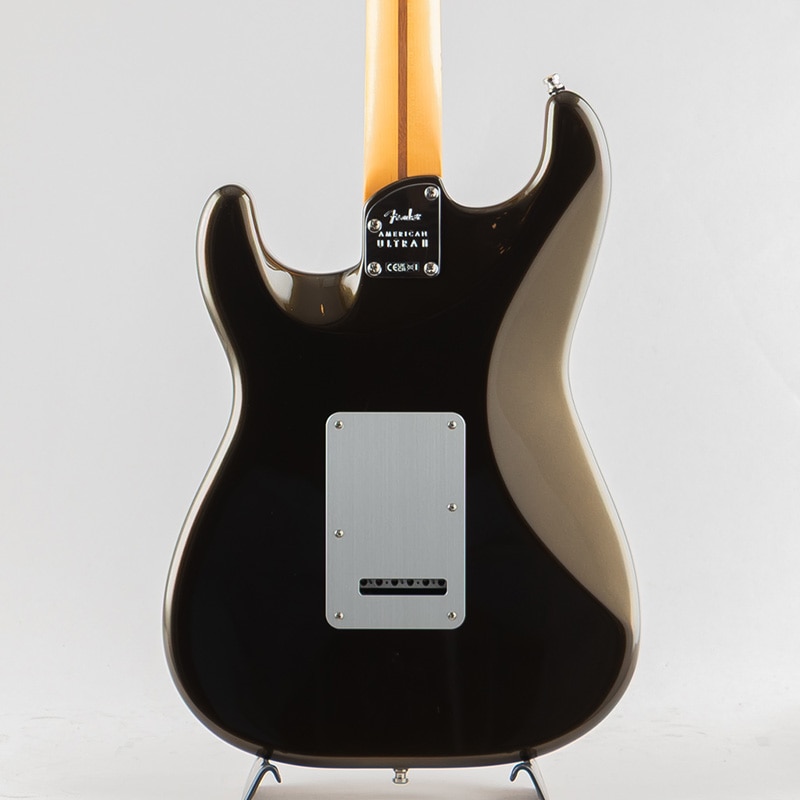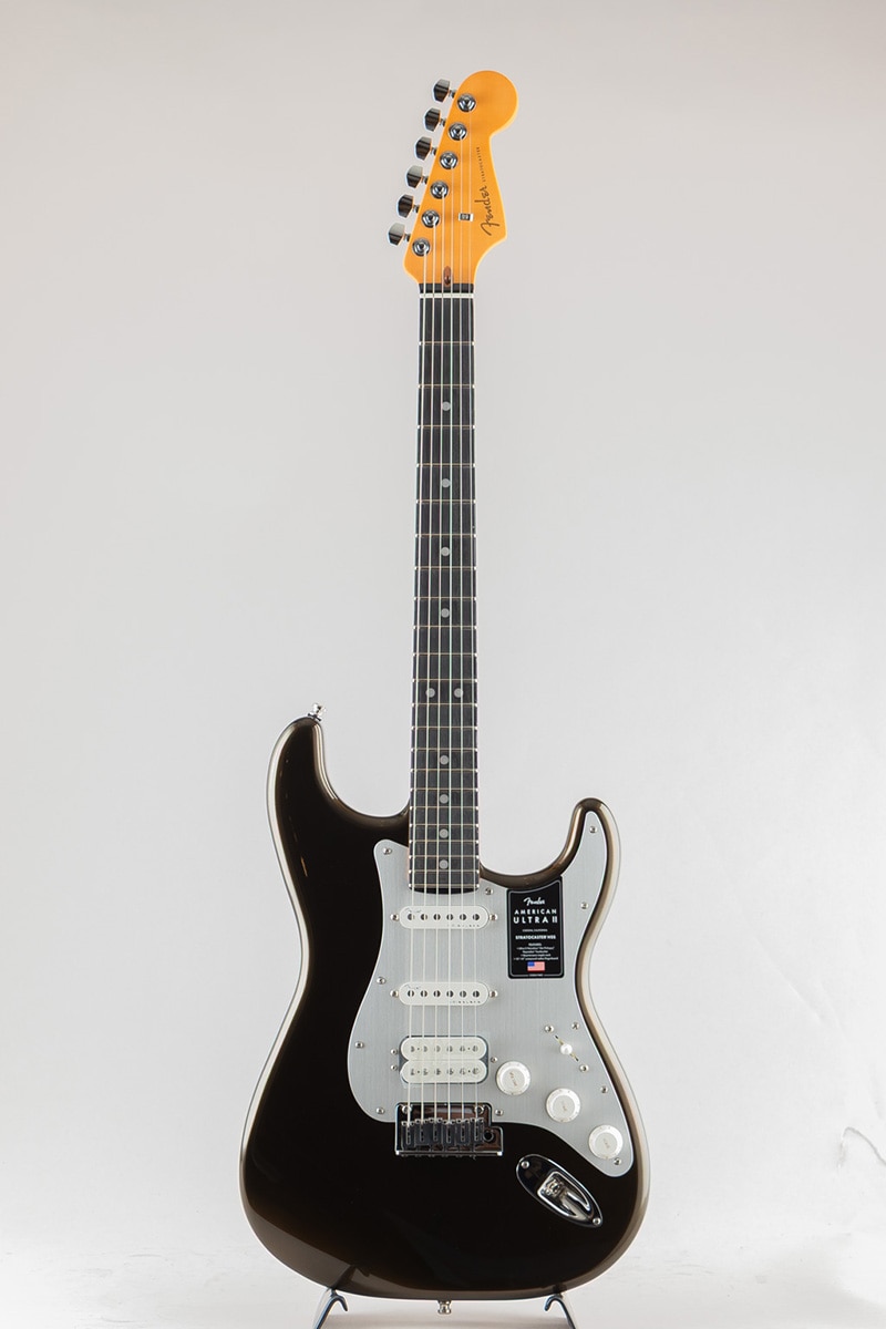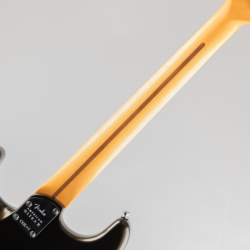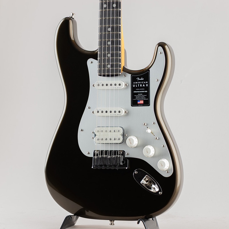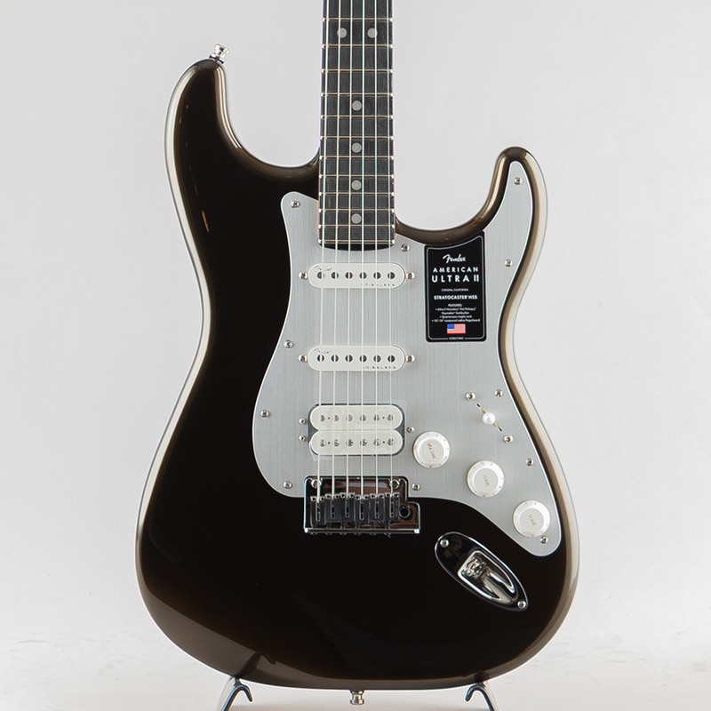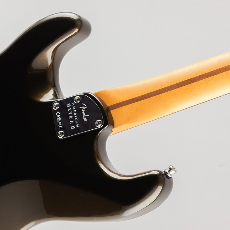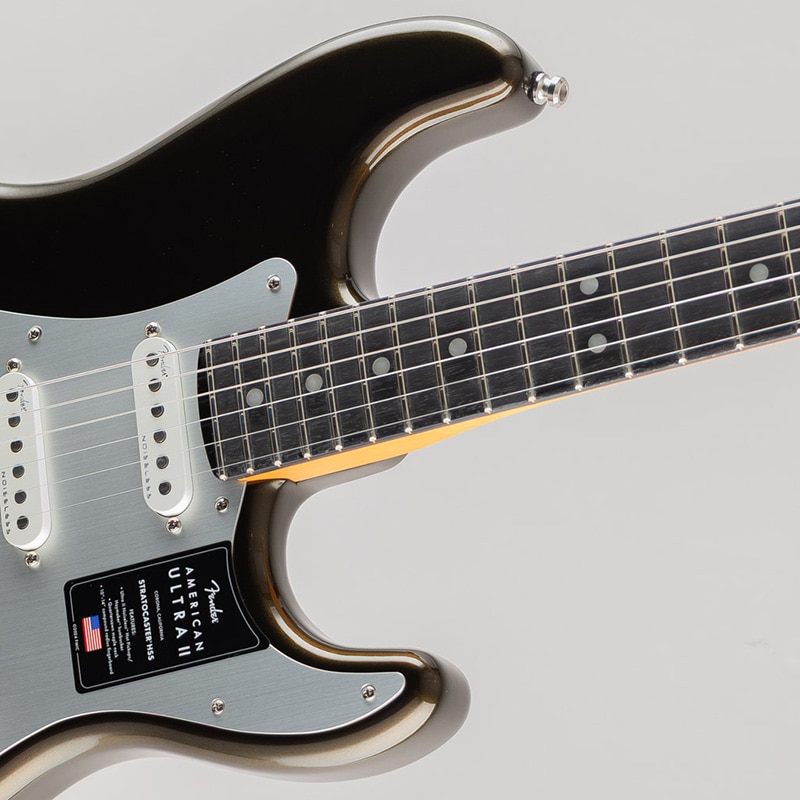 American Ultra II Stratocaster HSSは、厳選されたアルダーボディに深めのボディコンターが施されています。クォーターソーンメイプルネックはModern "D"ネックシェイプで、ネックバックは触り心地の良いUltra Satinフィニッシュで仕上げられています。10?14インチコンパウンドラジアのエボニーまたはクォーターソーンメイプル指板は、エッジを丁寧にロールオフ処理したUltraロールドエッジが採用されており、ミディアムジャンボフレット、蓄光式Luminlayサイドドット、Graph Tech TUSQナットを装備しています。テーパードネックヒールと深いボディコンターにより、ハイポジションへの容易なアクセスが可能です。