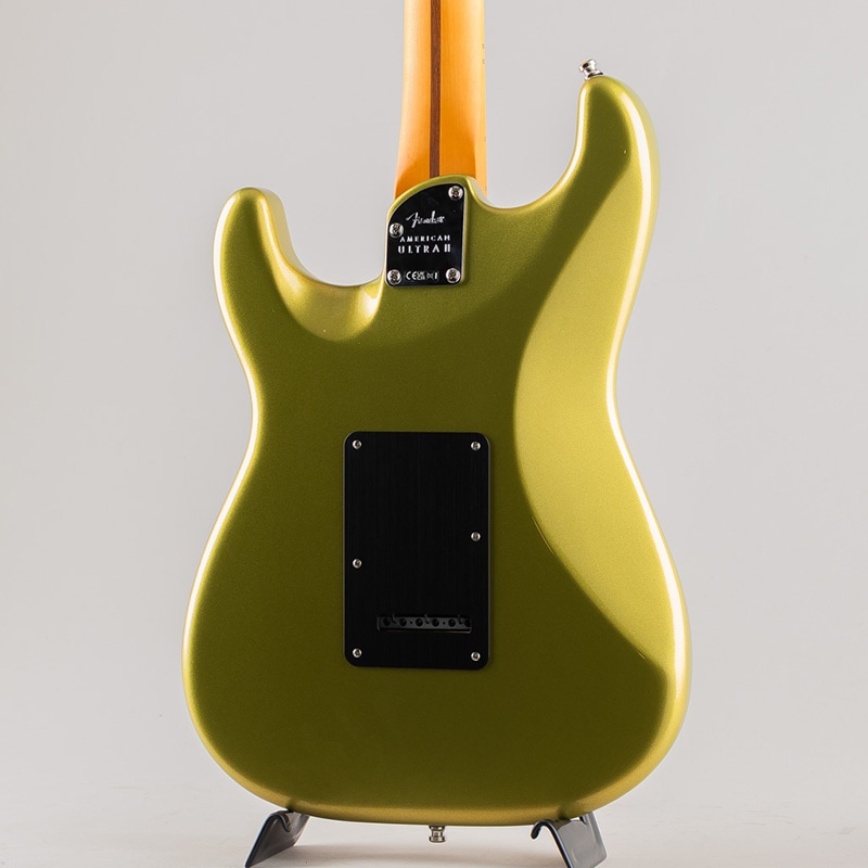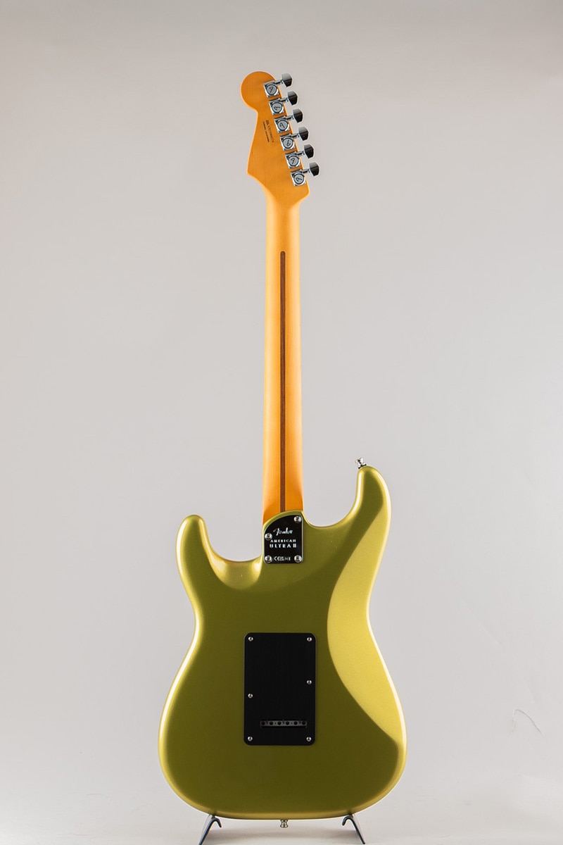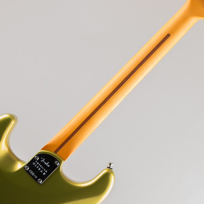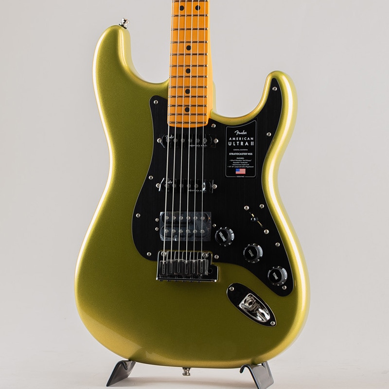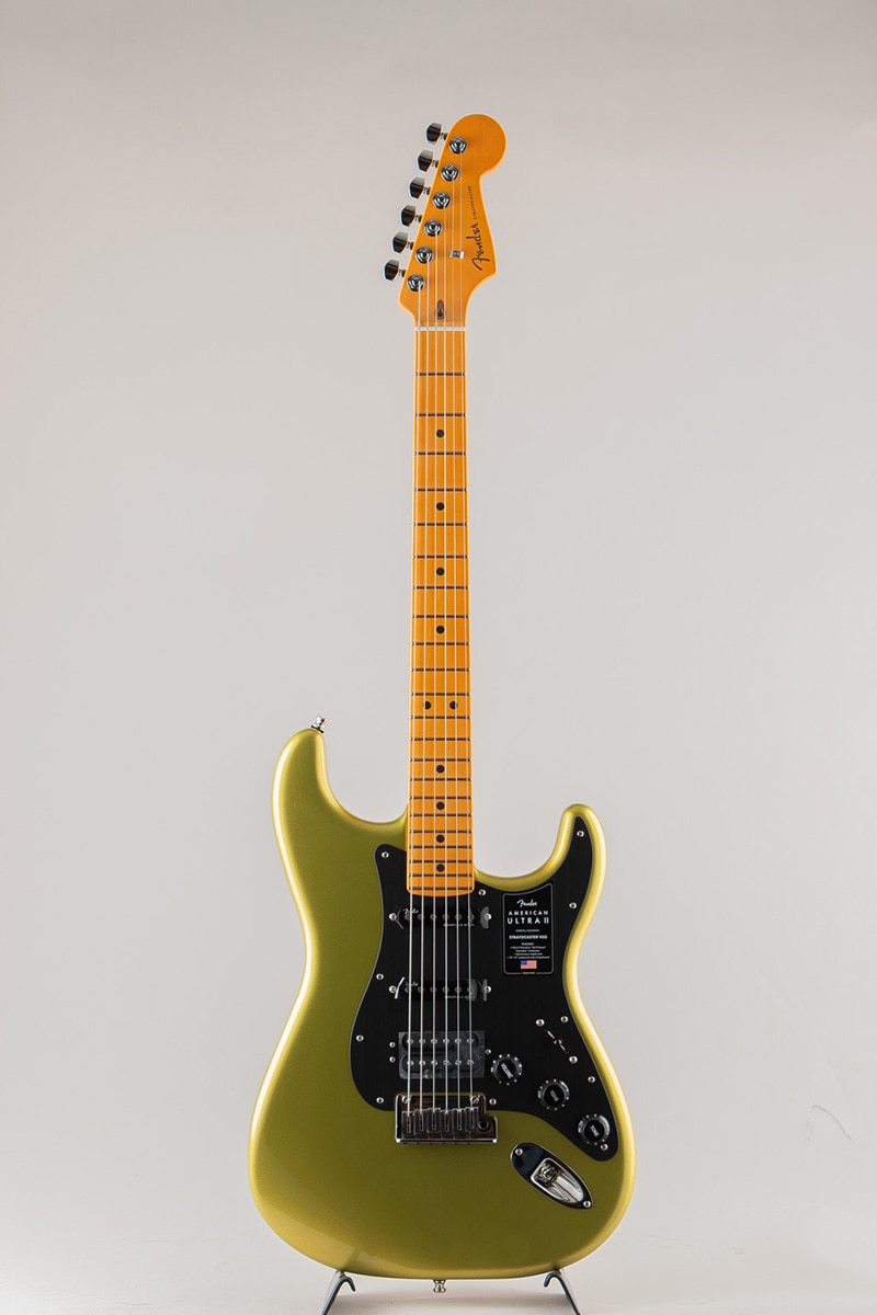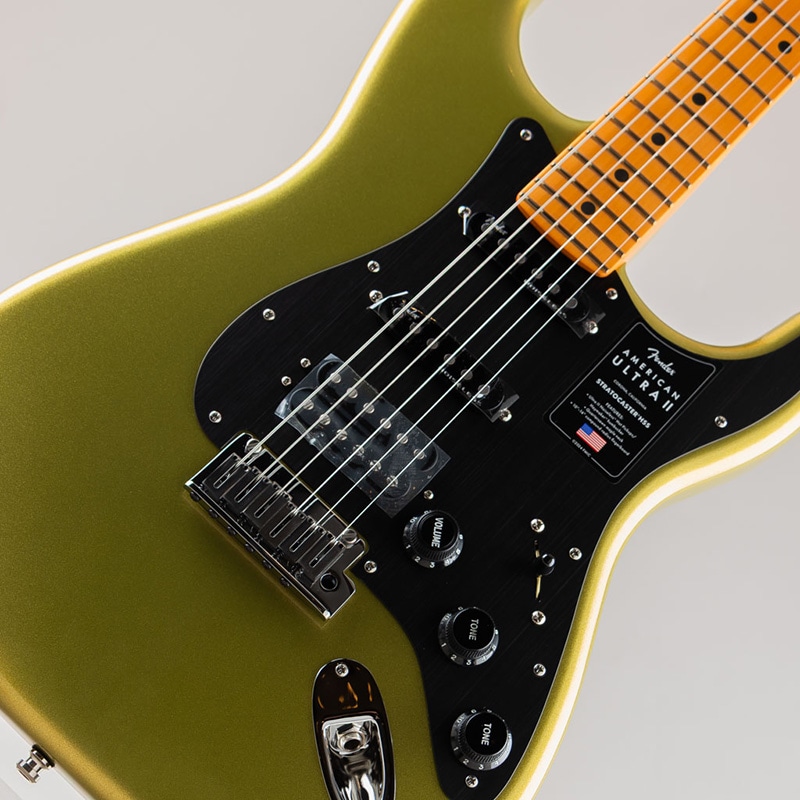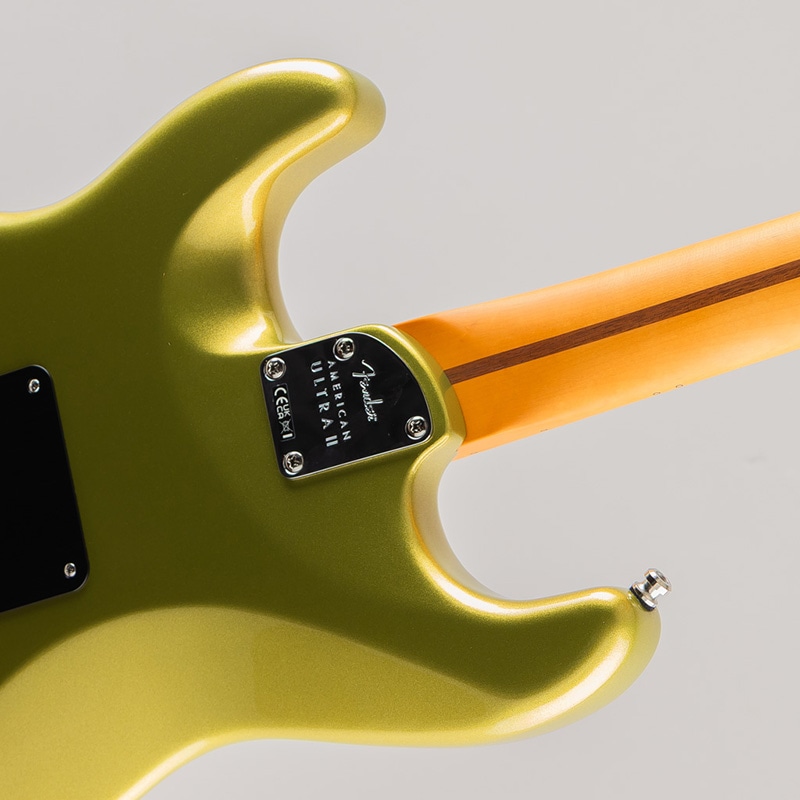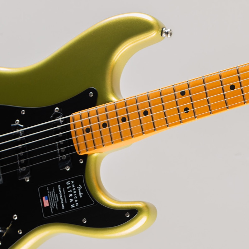 American Ultra II Stratocaster HSSは、厳選されたアルダーボディに深めのボディコンターが施されています。クォーターソーンメイプルネックはModern "D"ネックシェイプで、ネックバックは触り心地の良いUltra Satinフィニッシュで仕上げられています。10?14インチコンパウンドラジアのエボニーまたはクォーターソーンメイプル指板は、エッジを丁寧にロールオフ処理したUltraロールドエッジが採用されており、ミディアムジャンボフレット、蓄光式Luminlayサイドドット、Graph Tech TUSQナットを装備しています。テーパードネックヒールと深いボディコンターにより、ハイポジションへの容易なアクセスが可能です。