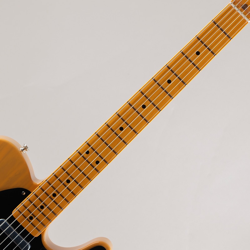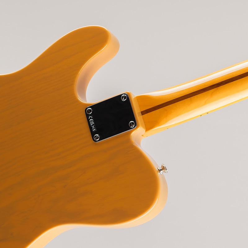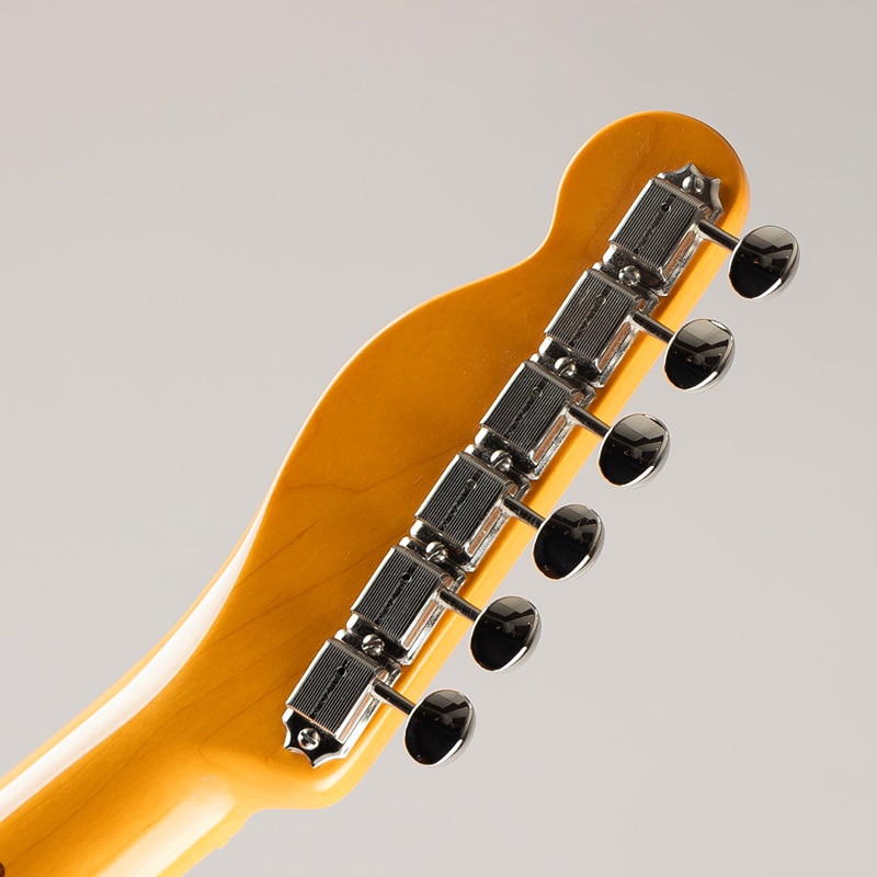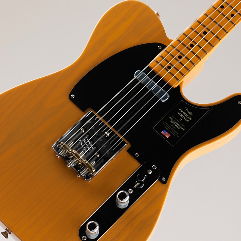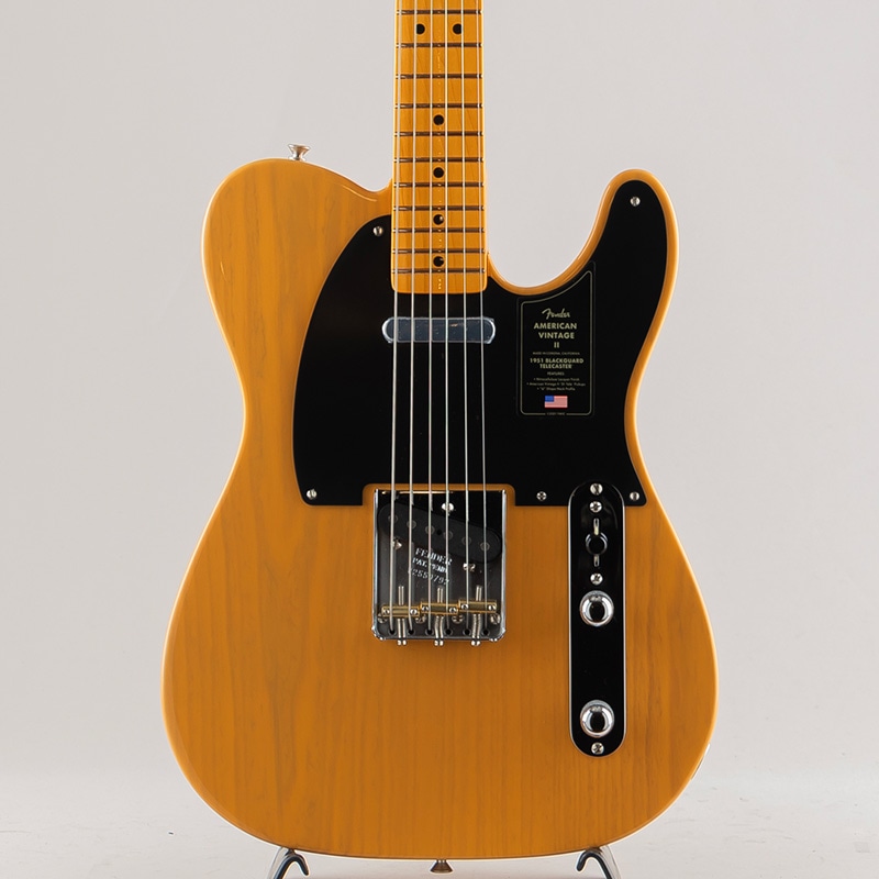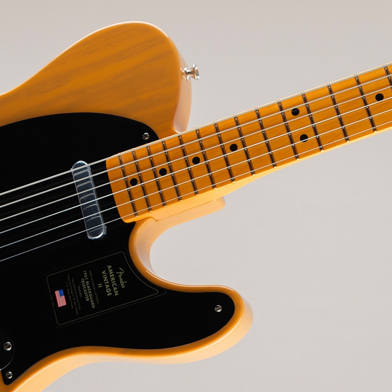 American Vintage II 1951 Telecasterは、Butterscotch Blondeフィニッシュのアッシュボディが特徴で、1951年に存在していたオリジナルモデルのトーンとフィーリングを再現しています。1951 ”U”シェイプのメイプルネックに21本のヴィンテージトールフレットを配した7.25ラジアス指板を採用し、まるで1951年に舞い戻ったかのような、当時の楽器の演奏性を彷彿させます。12フレットのポジションインレイの間隔が若干狭く、Phillipsヘッドファスナーがトラスロッドナット部にあるのも、1951年当時の製造仕様に則って再現されています。3ブラスサドル式ブリッジ、Fender Deluxeチューニングマシン、Pure Vintage '51 Telecasterピックアップが、クラシックでオーセンティックなトゥワングサウンドを奏でます。
