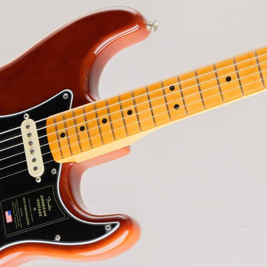 American Vintage II 1973 Stratocasterは、Pure Vintage '73 Staggered Poleピックアップを3基搭載し、デュアルストリングツリー仕様のラージヘッドストック、ヘッドに配置された便利なBulletスタイルトラスロッドナット、Micro-Tilt付きの3ボルト式ネックプレートなどを装備しています。1973 “C”シェイプのメイプルネックに21本のヴィンテージトールフレットを配した7.25インチラジアスのメイプルまたはローズウッド指板を採用し、まるで1973年に舞い戻ったかのような、当時の楽器の演奏性を彷彿させます。フェンダーのアイコニックなギターシェイプを讃えて開発されたAmerican Vintage II 1973 Stratocasterは、アッシュボディにLake Placid Blue、Mochaという2種類のフィニッシュをラインナップしています。MochaはStratocasterでBlackピックガードを採用した初のモデルです。その他、ヴィンテージスタイルのFロゴチューニングマシン、ベントスチールサドルとコールドロールド(冷間圧延)スチールブロック付きのシンクロナイズドトレモロといったプレミアムな仕様を備えています。