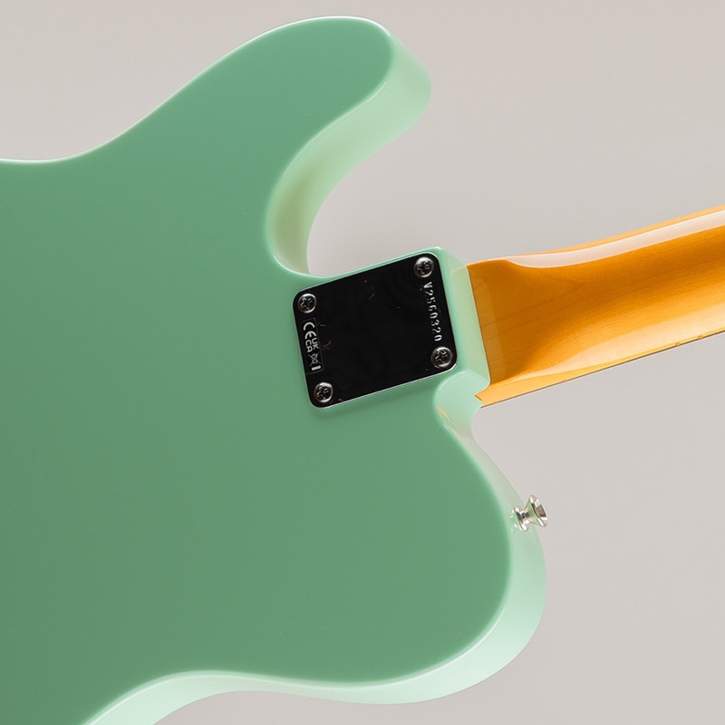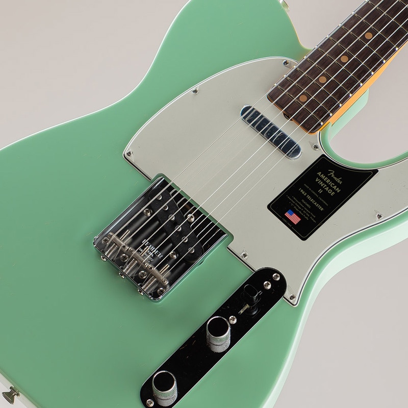1963年には、新しいトーンウッドの組み合わせとして、サウンドにパンチがあり明瞭度の高いアルダー材に、ウォームなトーンを提供するラウンドローズ指板を採用したモデルが登場し、Telecasterの特徴的なトゥワングサウンドがさらに強調されるようになりました。Pure Vintage '63 Telecasterピックアップ、3スレッデッドスティールサドルブリッジ、7.25インチラジアス指板を配した快適な1963 "C"シェイプメイプルネックを装備したAmerican Vintage II 1963 Telecasterは、1963年当時に生産されてたオリジナルモデルの真髄といえるトーンとフィーリングを再現しています。本モデルは、12フレットのポジションインレイの間隔が若干狭いクレイドットといった細部にまでこだわり抜いて再現されています。マホガニーボディにCrimson Red Transparentフィニッシュ、アルダーボディにSurf Greenフィニッシュといった2色のモデルをラインナップしています。