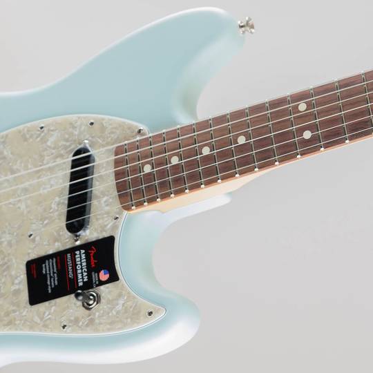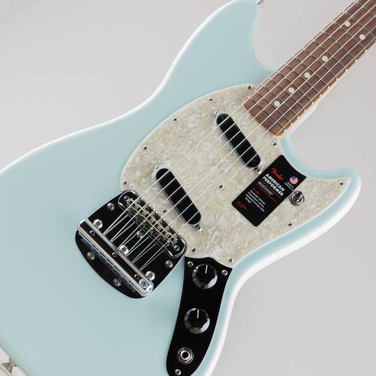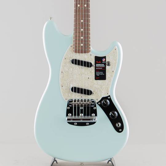 またAmerican Performer Mustangはトーンを絞った際に低域も同時に適量アッテネートする Greasebucketトーンサーキットを搭載し、音の濁りを防ぎます。さらにブリッジにはモダンヴィンテージスタイルの溝切りサドル付きMustangブリッジを採用。9.5インチラジアス指板のModern C シェイプネックには 22 本のジャンボフレットを装備し、スムーズかつ正確なベンディングが行えます。