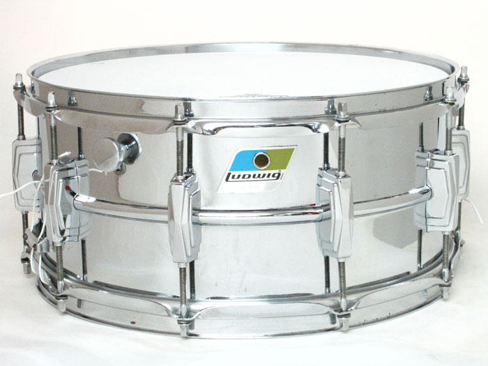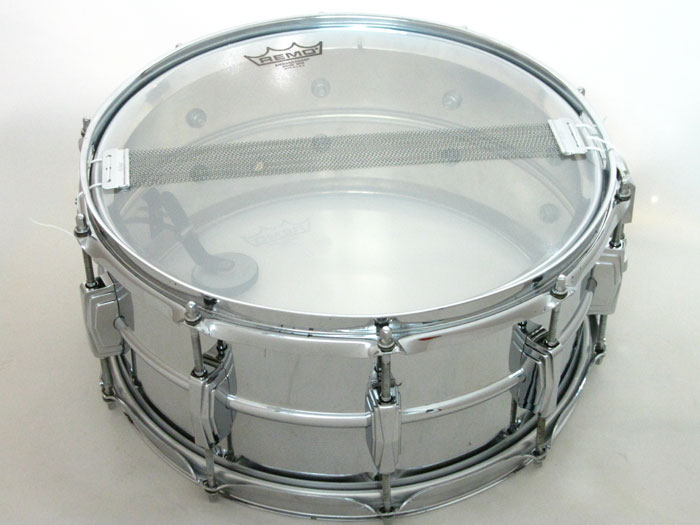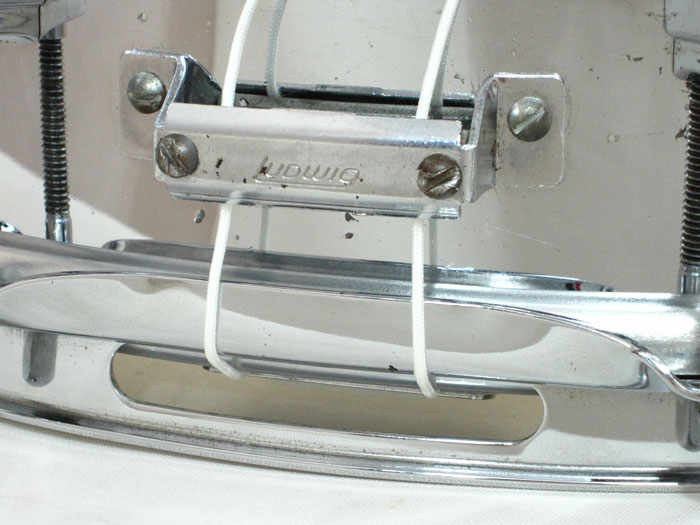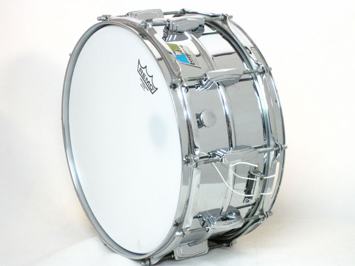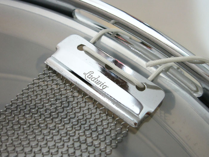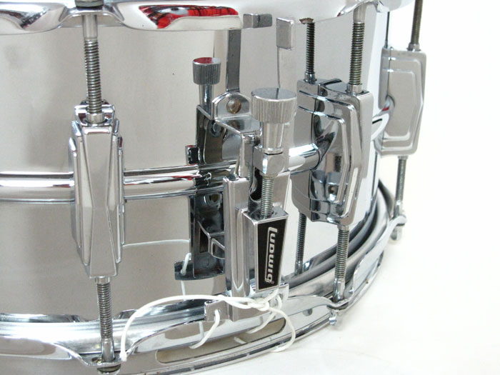 シェルマテリアルは勿論ながらラディアロイ(アルミ合金)を使用。エンブレムはB&O(BLUE&OLIEVE BADGE)、ストレイナースイッチは70s BLACK FACEのP-85の2穴タイプ、オリジナルフープが取り付けられております。内蔵マフラーはオリジナルでございます。またシェル内側に「Reliable Anti-Galvanic」のLUDWIG特有のブルーシールも残っています。