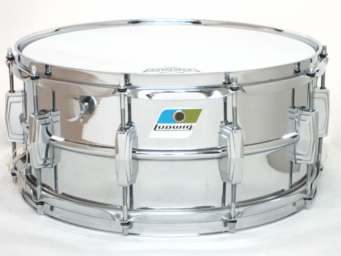 シェルマテリアルは勿論ながらラディアロイ(アルミ合金)を使用。エンブレムはB&O(BLUE&OLIEVE BADGE)、ストレイナースイッチは70s BLACK FACEのP-85の2穴タイプ、オリジナルフープが取り付けられております。内蔵マフラーはオリジナルでございます。またシェル内側に「Reliable Anti-Galvanic」のLUDWIG特有のブルーシールも残っています。