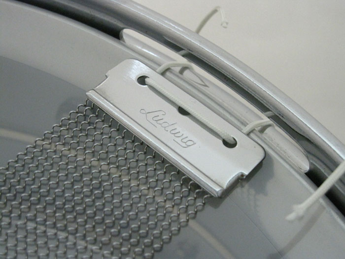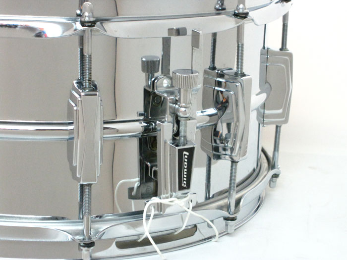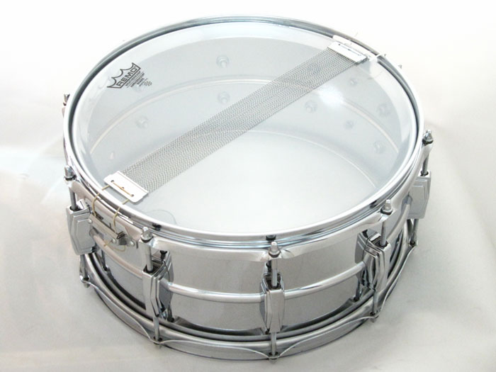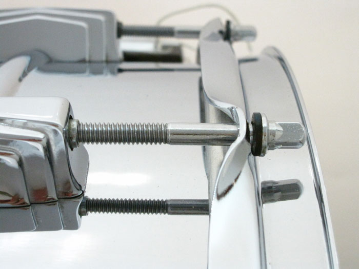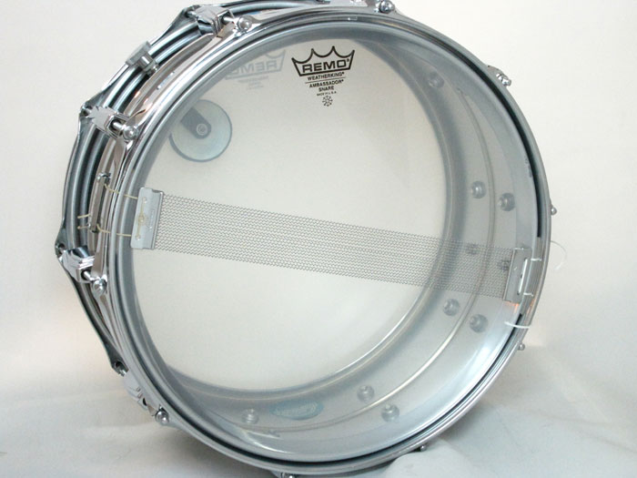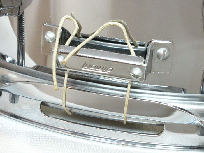 バット部は70S P-32を搭載し止めネジも生きています。スナッピーワイヤーはオリジナルL-1930、トップヘッドはREMOコーテッドアンバサダー、ボトムヘッドはスネアサイドアンバサダーを装着しております。Ludwigスネアの中で重要な役割をするテンションボルトワッシャーはブラス製のオリジナルで高音域の倍音成分を緩和します。