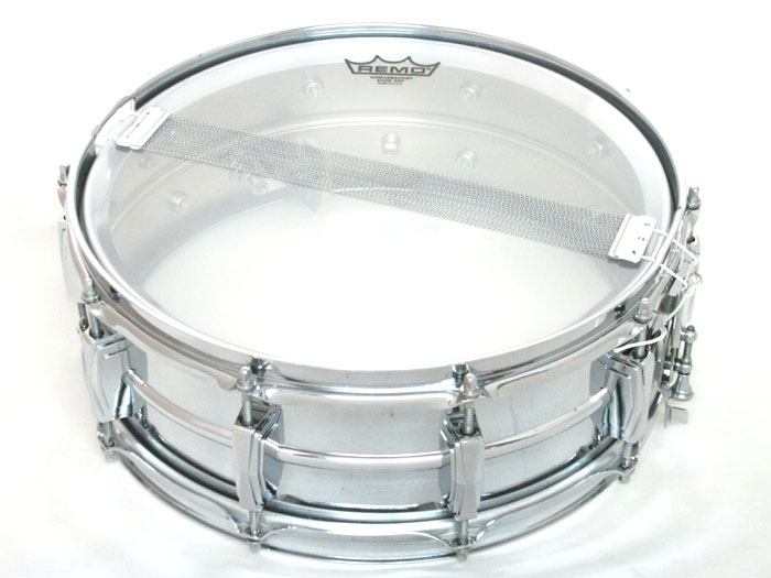 ヘッドはREMOコーテッドアンバサダー、ボトムもREMOスネアサイドアンバサダーが装着されています。スナッピーは60年代オリジナルLudwig L-1930が装着されています。