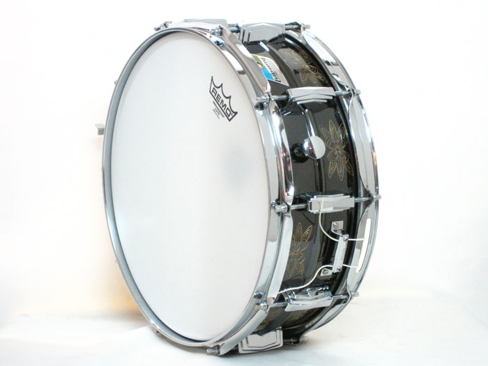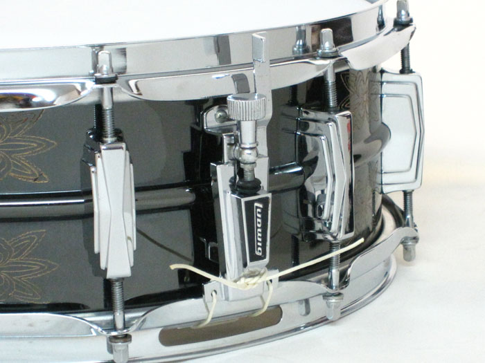トップ・ボトムフープ、ストレイナースイッチ、バット、内蔵ミュート、ラグ、テンションボルト、テンションボルトワッシャーもブラス製のオリジナルが装着、スナッピーワイヤーは60年代のL-1930でNEW OLD STOCKが装着されてます。またボトムヘッドはオリジナル70年代後期型のWeatherMaster db-300 スネアサイドで、トップはREMOコーテッドアンバサダーに交換されてます。
