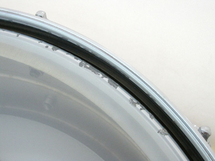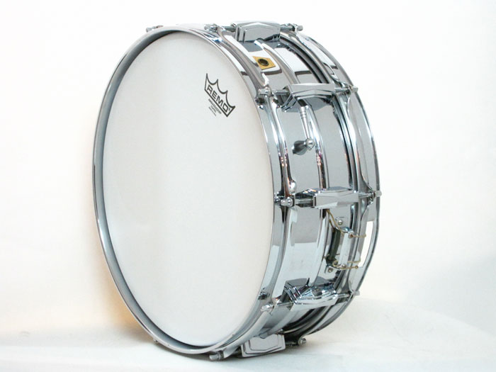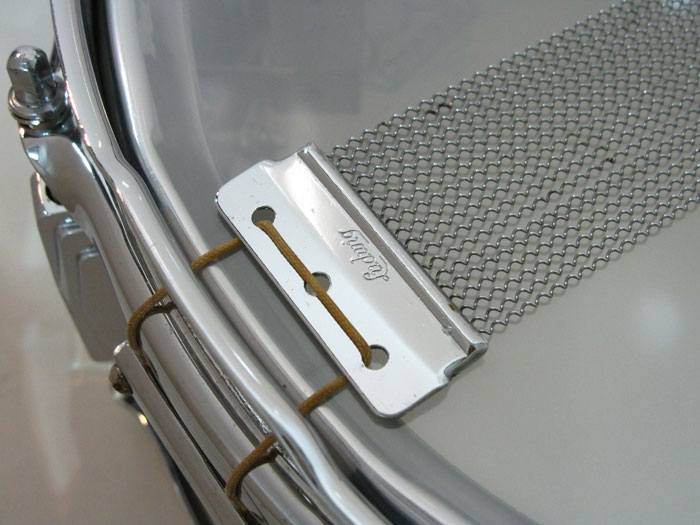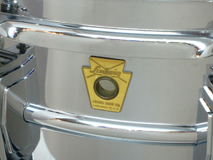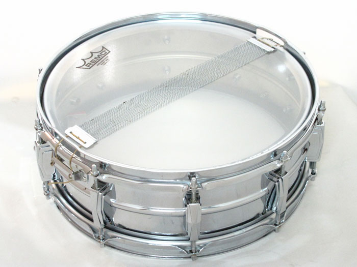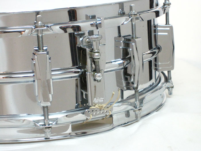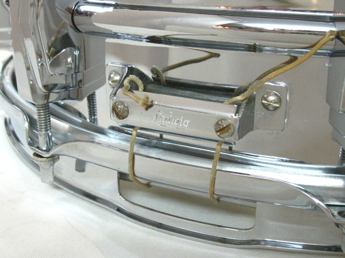 シリアルナンバーはプリシリアルで主に1960-63年までの製造とされています。キーストーンバッジ装着。マフラースイッチは64年のみ仕様されていた赤タイプベースボールバットスイッチが装着されています。またボトム側のスネアベッド部にくぼみがあるのは最初期型でSUPRER LUDWIGのブラススネアに採用されていたものです。シェルストレイナースイッチは60年代のP-83装着で、スナッピーのオンオフはかなりスムーズです。トップ、ボトムフープ共にCOBフープのLudwigオリジナルが装着されています。