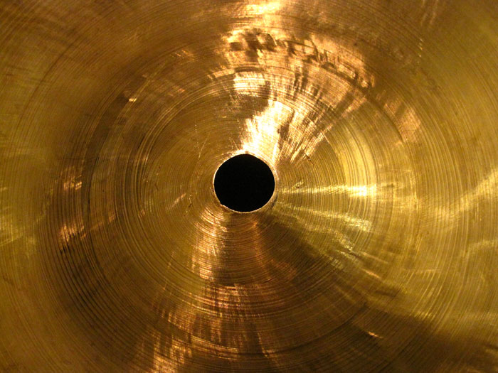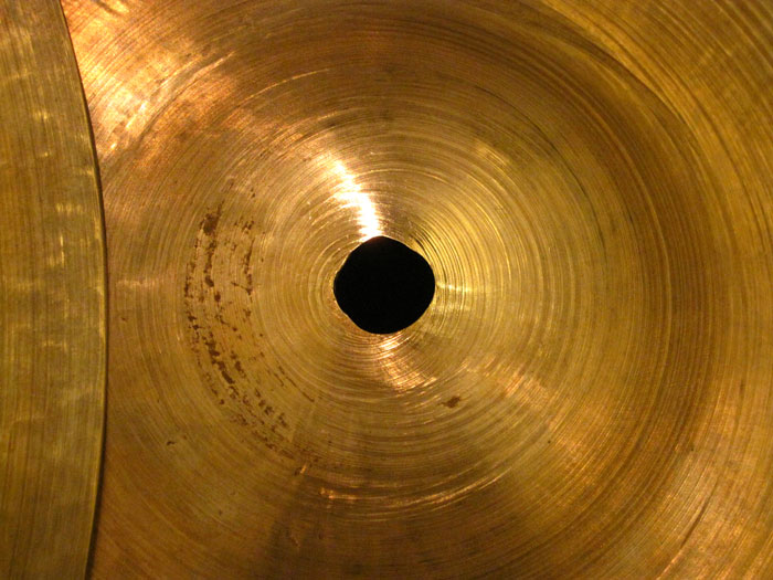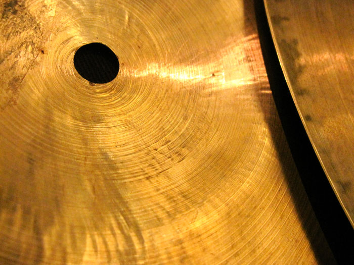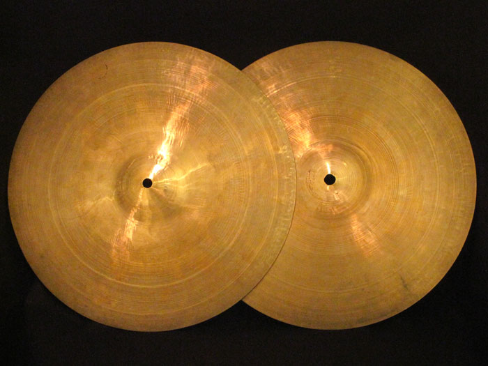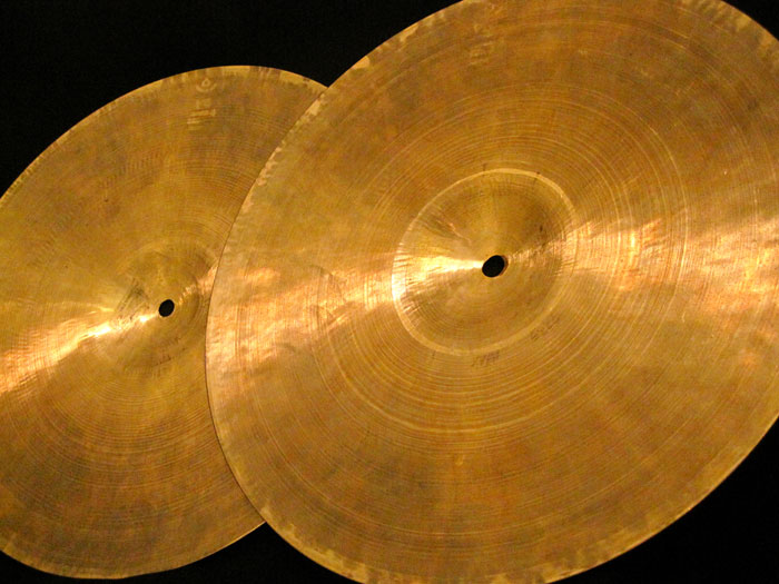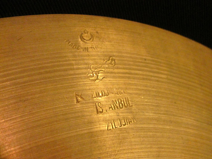「Old Stamp 場Lc」という刻印はあまり見かけないタイプで、僅か2年しか製造していない希少品でございます。月の外側に☆印があり(これより以前のものは月の中にある)このタイプのアラビア文字は最後となります。スティックの角度、位置、叩く強さで様々な表情が見出せます。非常に複雑な倍音成分で、基本的に粒立ちが良くまとまっておりハーフオープン音はトラッシィー、フットサウンドはドライでダークサウンドとなっています。録音等にはポップスまでいけるか、ピアノトリオ、やややさしいジャズにマッチするかと思われます。