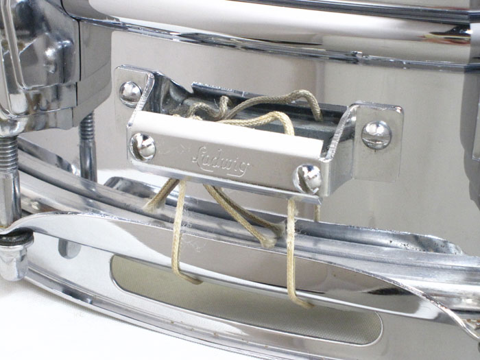 ストレイナースイッチは70s 初期型BLACK FACEのP-85の12穴タイプ、バット部/60's P-32止めネジも良好、内蔵ミュートも付属で、オリジナルの多いスネアとなっています。