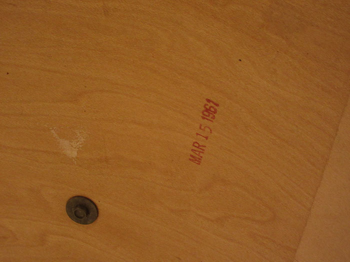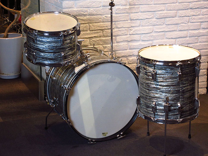 シリアルナンバーは3点ともプリシリアルとなっております。(シェルインナースタンプは全てMAR 15 1961)またタム、フロアタムのマフラーミュートがP-4066が搭載されているため64年以前の物と判断できます。