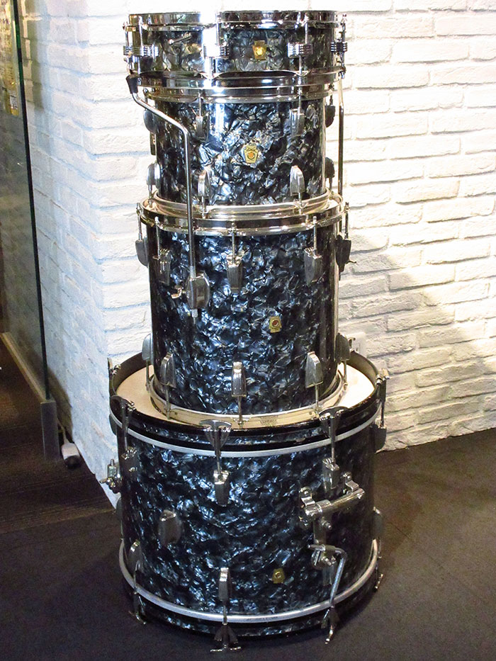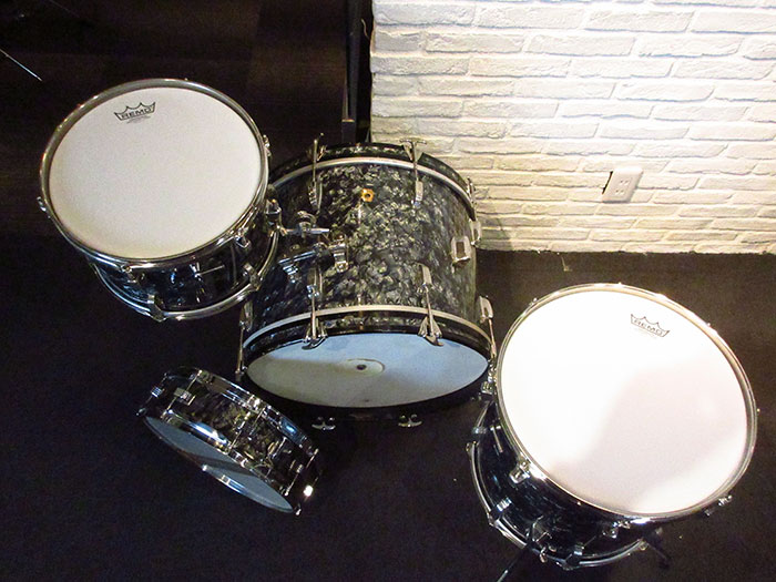 こちらのセットタムをはじめ、すべて音の伸びサスティンが豊かでふくよかさがあり、ブラスフープの甘いサウンドが特徴で非常に当時の雰囲気を醸し出しております。パワー感も充分あり現代の音楽にもお使い出来るかと思います。