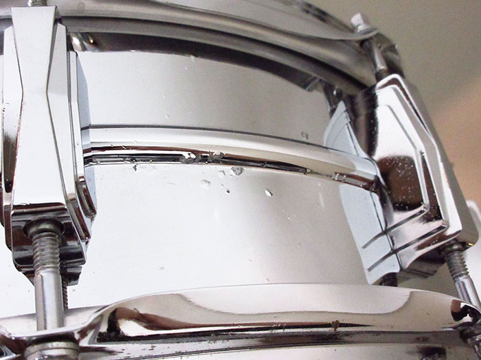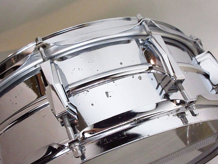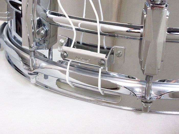 70年代製ブルーオリーブバッジを装着。フープ、ストレイナー、ラグ、内蔵マフラーは70年代オリジナルパーツでございます。ビッツやサビ、小傷などあります。ストレイナースイッチの動作もスムーズで現状使用に問題無く、サウンドに影響するようなキズはございません。