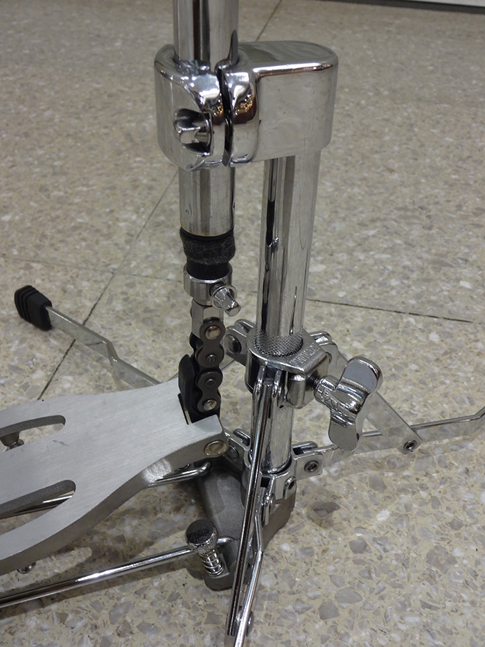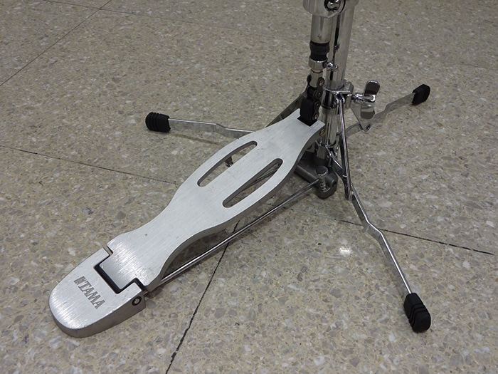 下段パイプの表面の一部に施されたローレット加工は、脚部を開閉する三又部との摩擦を増やして滑りにくくするためのひと工夫。プレートを踏み込んだ際でも、三又部が滑ることを防ぎ、スタンドを常に安定させる効果があります。