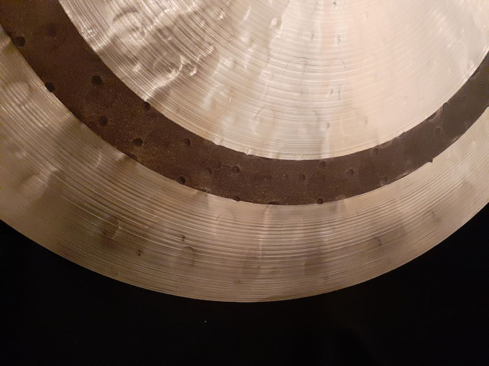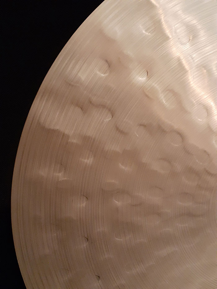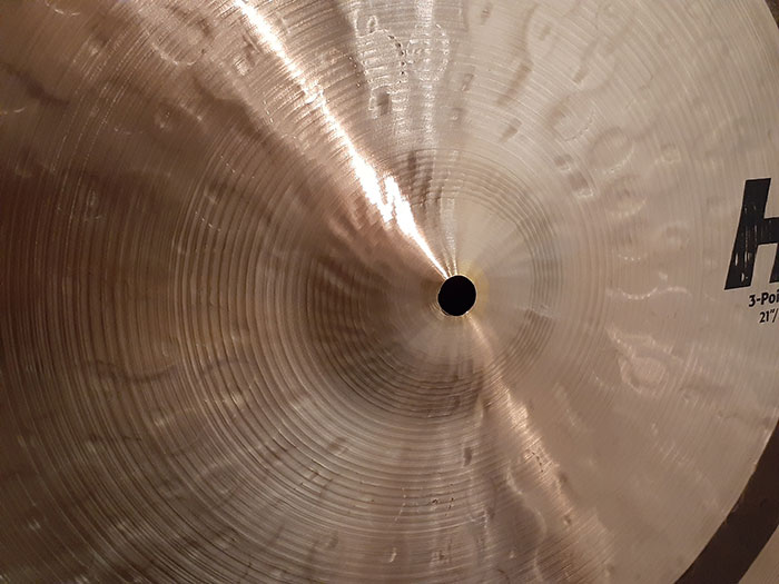 そのことによりジャズドラマーが好むコツコツとした明瞭なレガート音が得られます。小さめのカップの影響もあるのでしょうか。サイズも20インチではピッチが高すぎるのでこの21インチサイズが絶妙です。