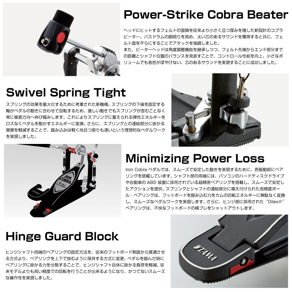 更なるスムーズな動きと耐久性向上のために開発された機構や、プレイヤーの表現力を高める新ビーターなど、進化した新しいIRON COBRAを、是非その“足”でお確かめください。