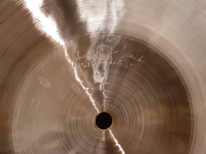 シンバルカップ裏には製作家ご本人のサインとシリアルナンバーが記載されています。