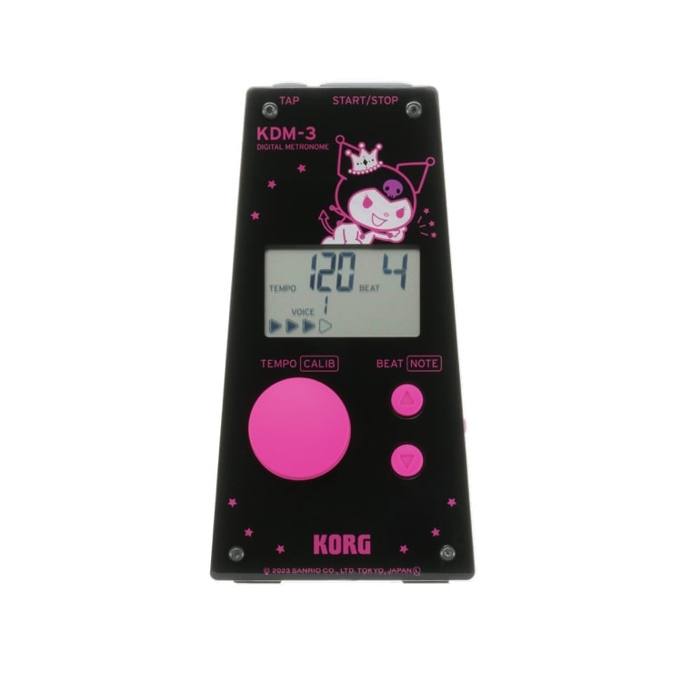 KORGのKDM-3デジタルメトロノームにサンリオコラボモデルが登場いたしました! 【KDM-3の仕様】 ・機械式メトロノームをイメージした、スタイリッシュなデザイン。 ・機械式メトロノーム音を含む、8種類のメトロノーム音。 ・19種類のビート・パターンを収録し、あらゆるジャンルの楽曲に対応。 ・ワンタッチで簡単操作。見やすいディスプレイ。 ・用途に合わせた3通りのテンポ設定。 ・基準音を聞きながらチューニングできる、サウンドアウト・モードを搭載。 ・基礎練習に便利な、タイマー・モード。 ・メモリー・バックアップ機能、オート・パワー・オフ機能搭載。 ・長時間の練習にも安心の、ロング・ライフ設計。