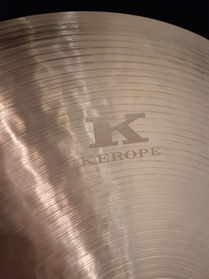 シンバル表面の『KEROPE』のロゴはレザーにより記載されています。元から少し薄い場合もございますがご了承下さいませ。